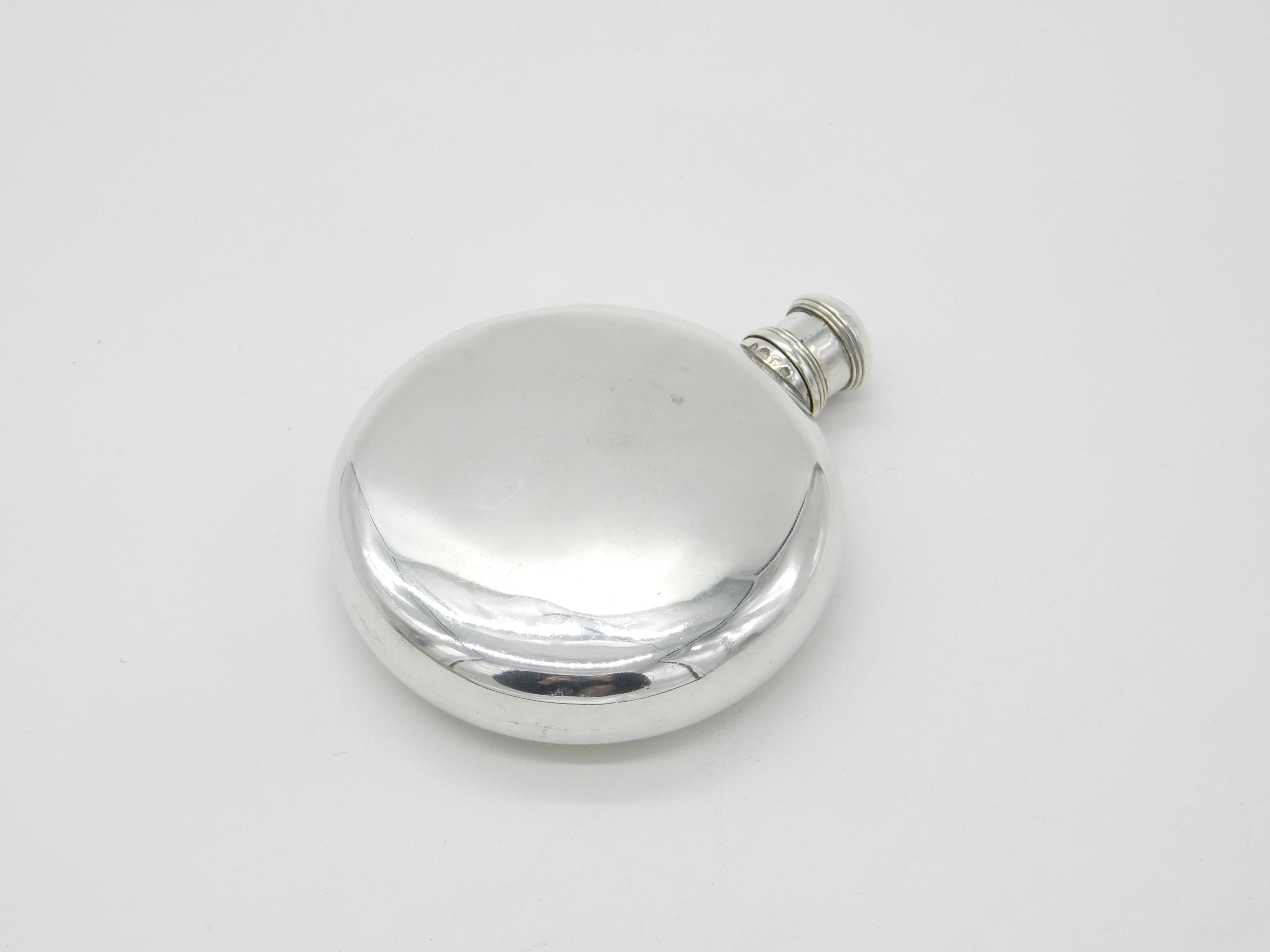 Victorian Sterling Silver Circular Spirit Hip Flask Antique c1880 London