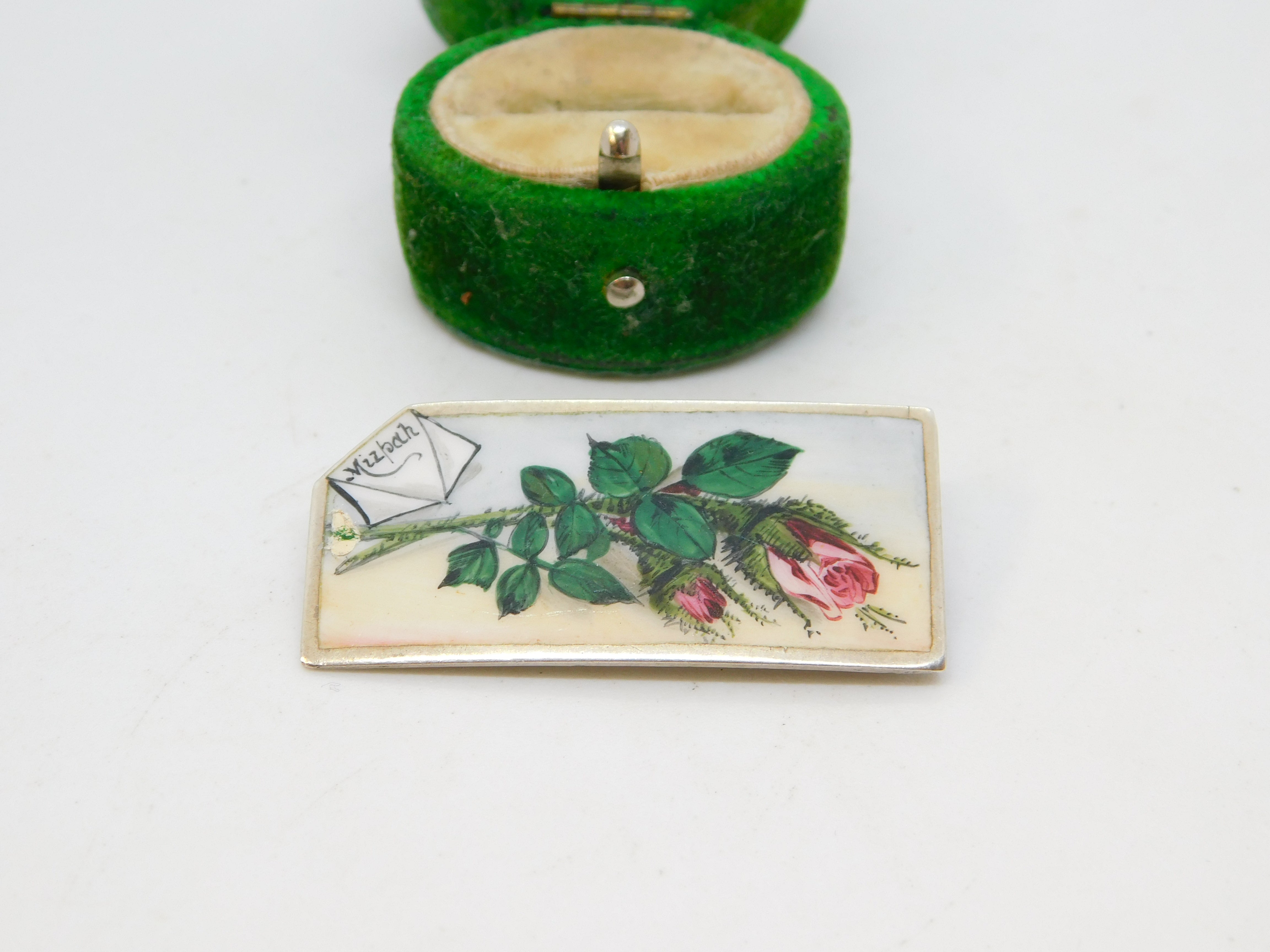 Victorian Sterling Silver Colourful Enamel Mizpah Sweetheart Brooch Antique 1883