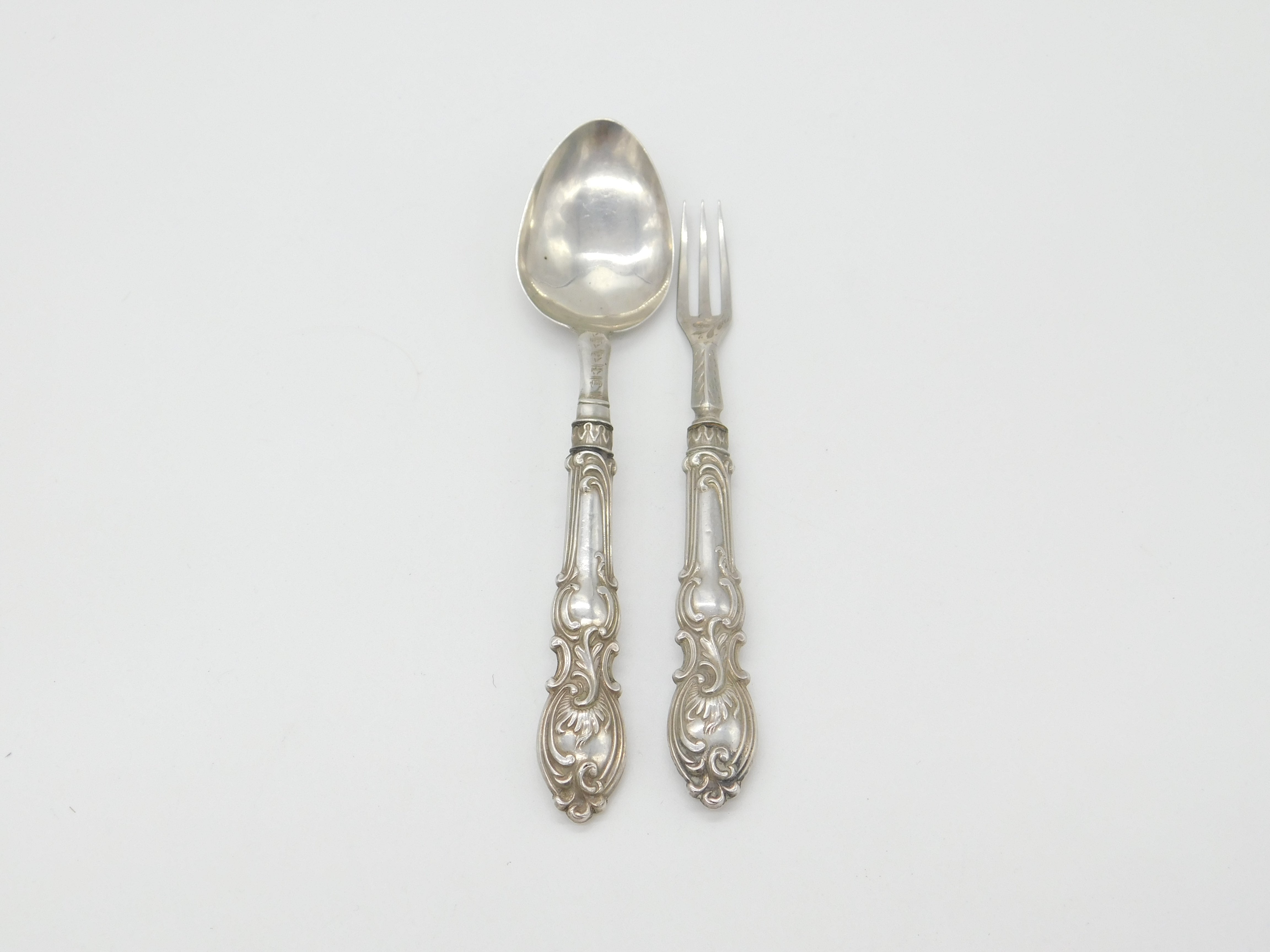 Victorian Sterling Silver Christening Spoon & Fork Antique 1851 Birmingham