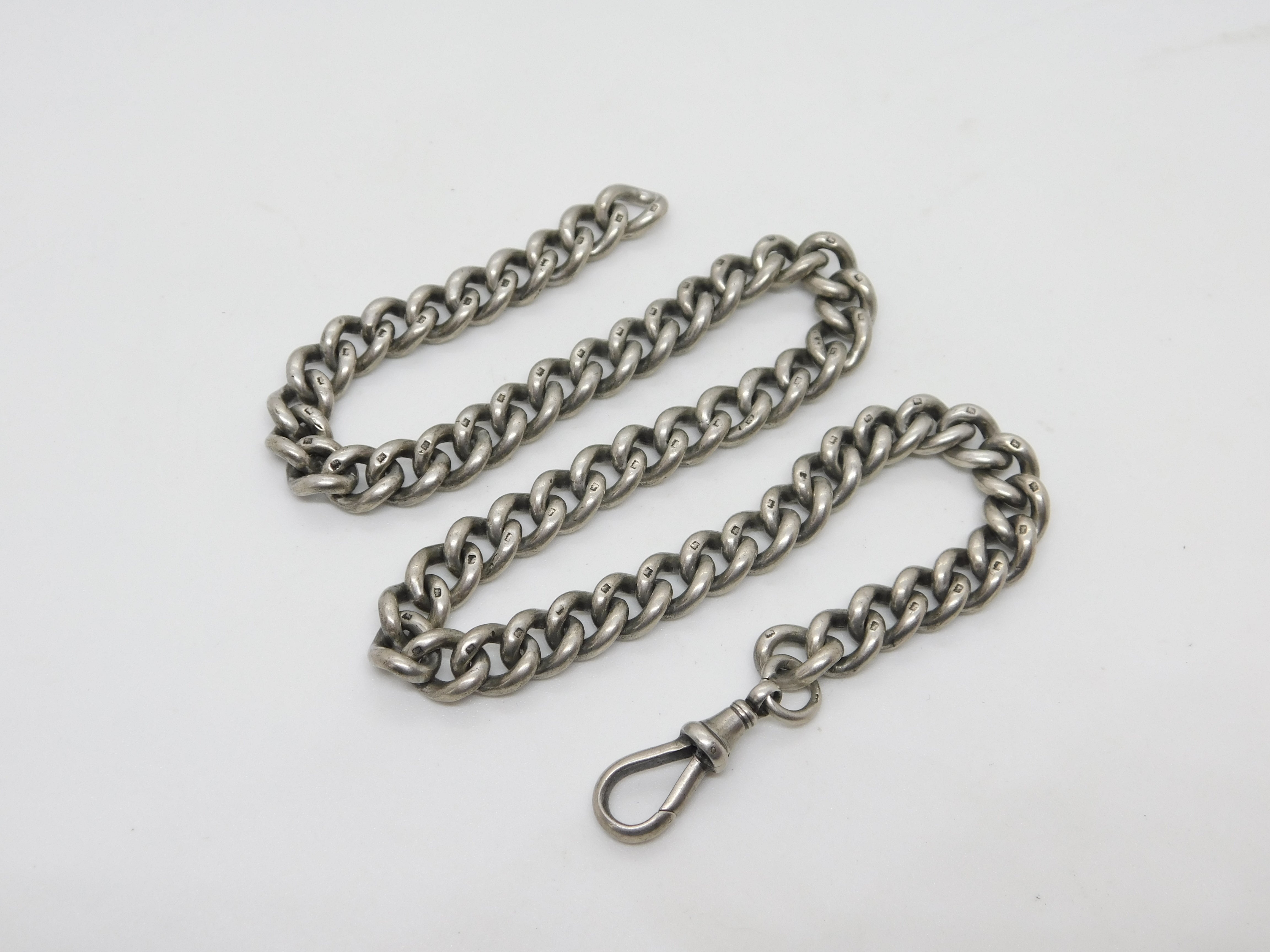 Victorian Sterling Silver Chunky Single Albert Watch Chain Antique c1880