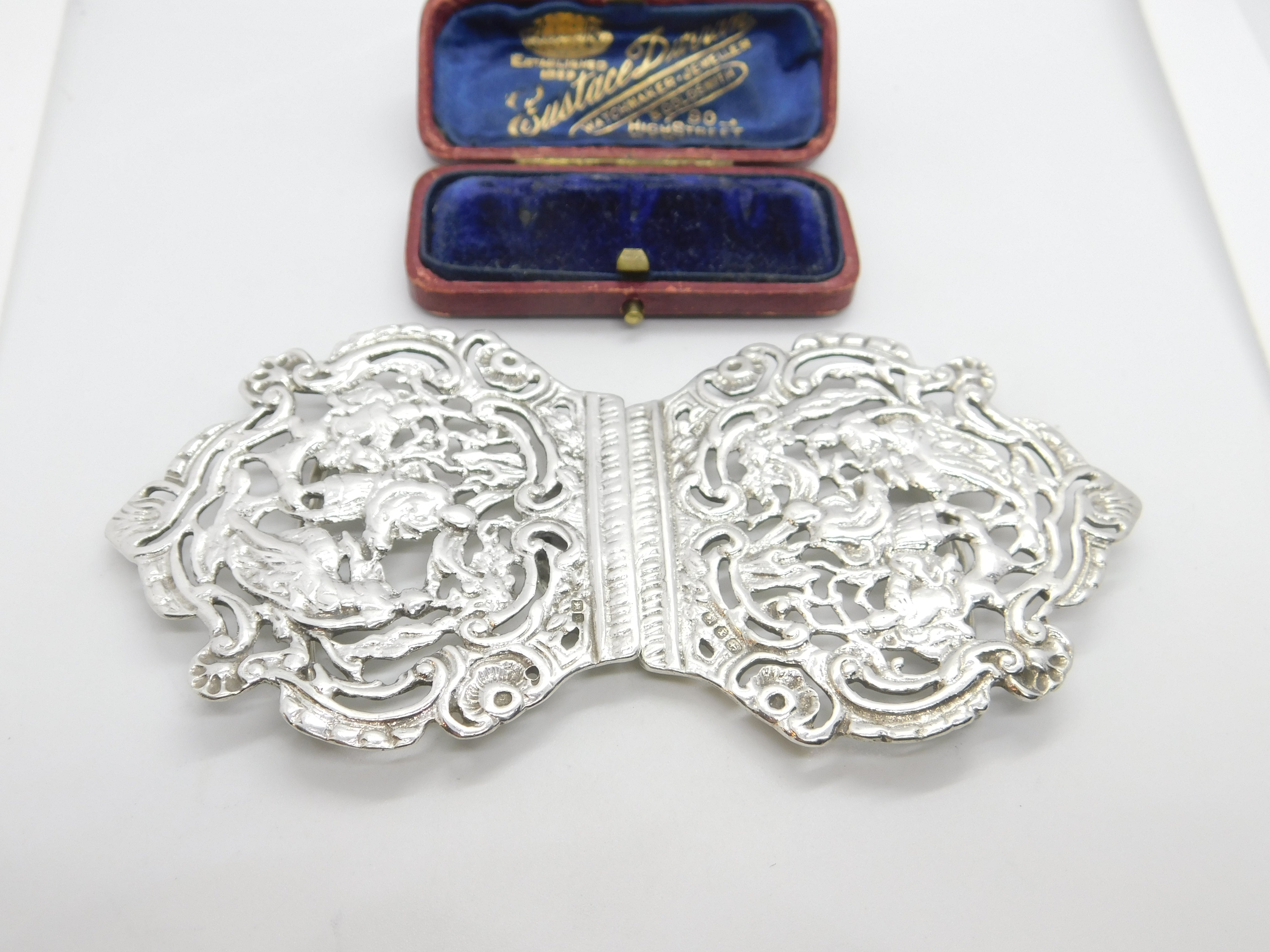 Victorian Sterling Silver Classical Cherub Pattern Nurses Buckle 1897 Birmingham