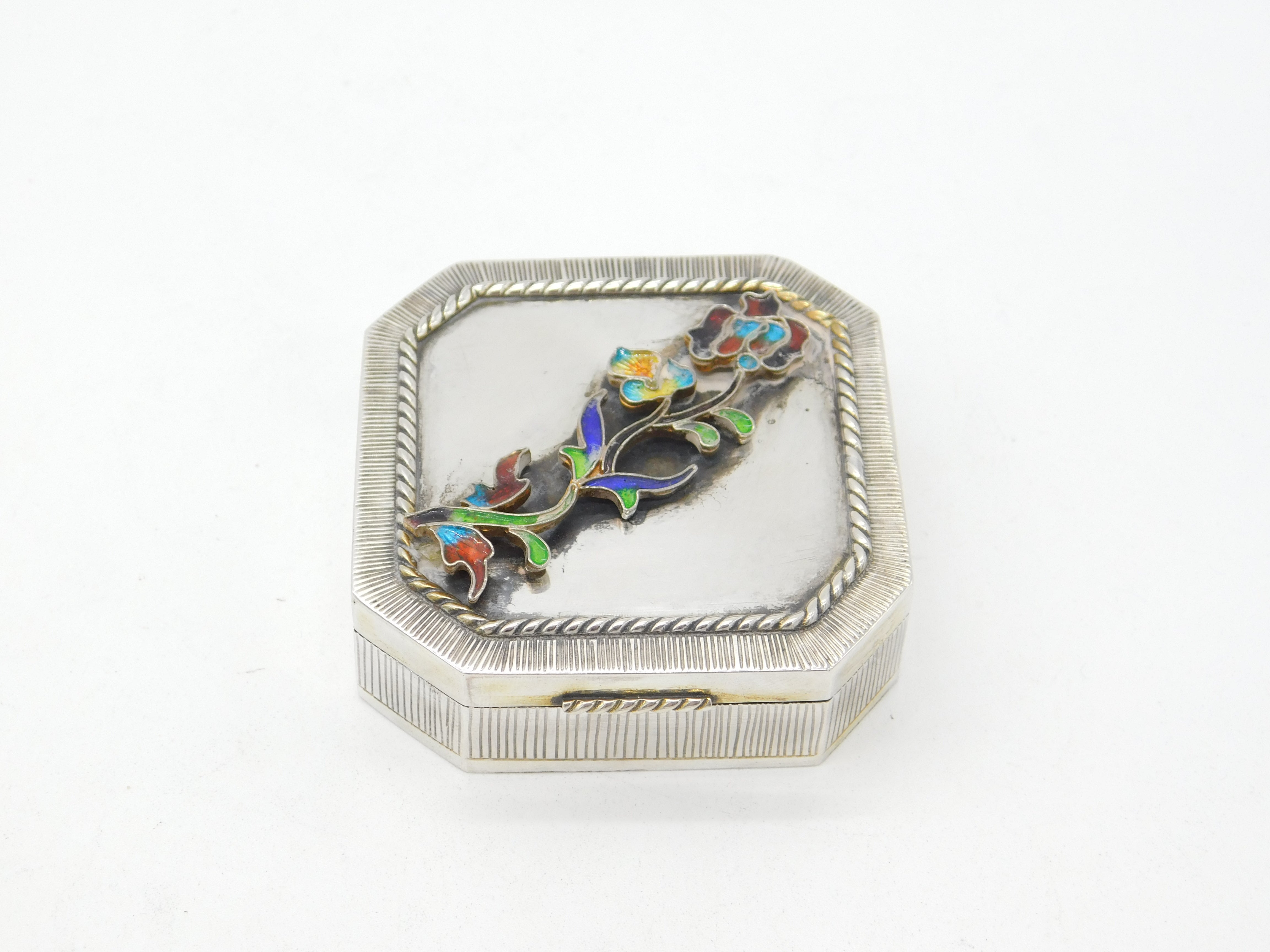 Victorian Sterling Silver Colourful Enamel Floral Trinket Box c1890 Antique