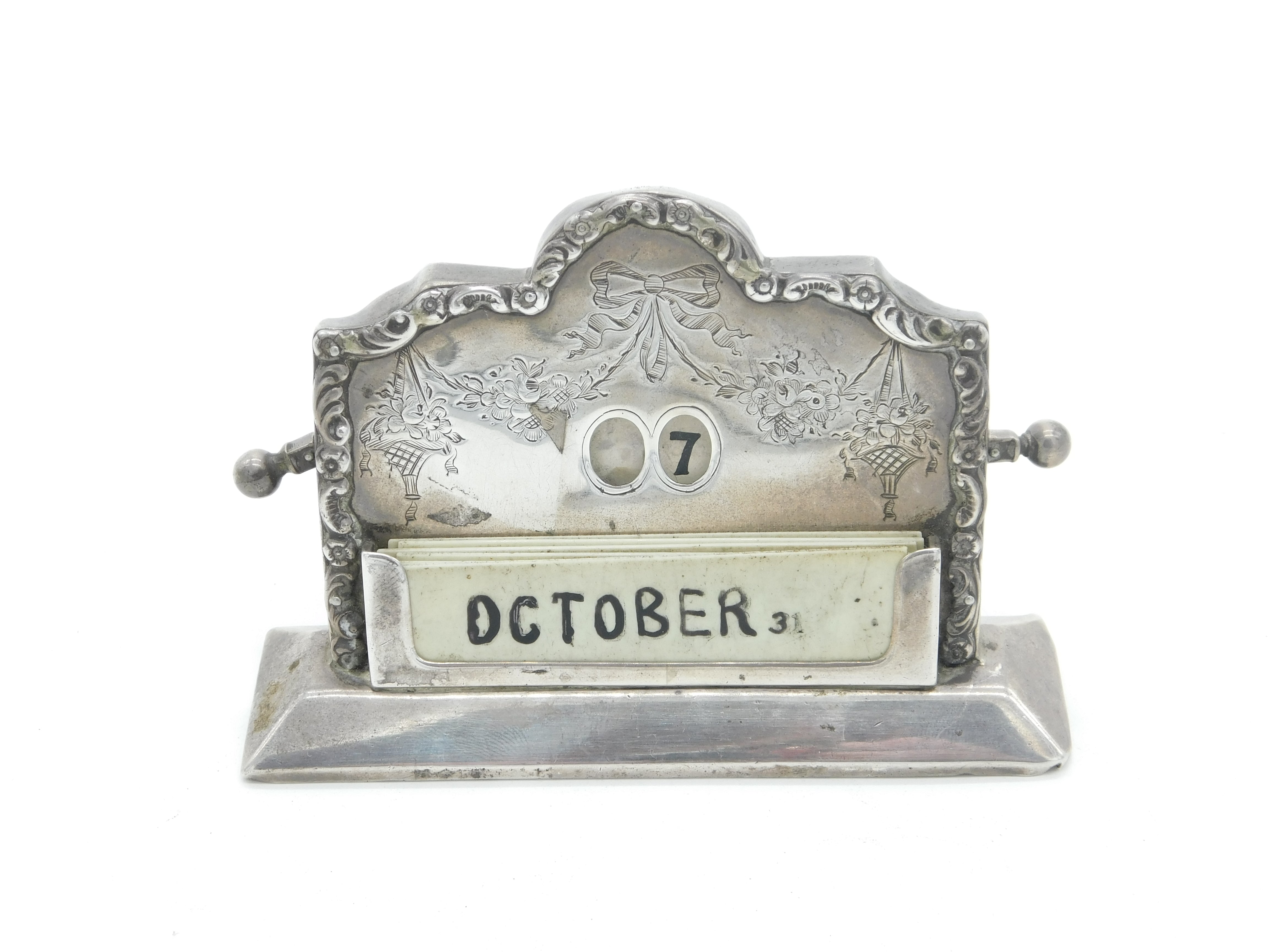 Victorian Sterling Silver Floral Perpetual Desk Calendar Working 1901 London
