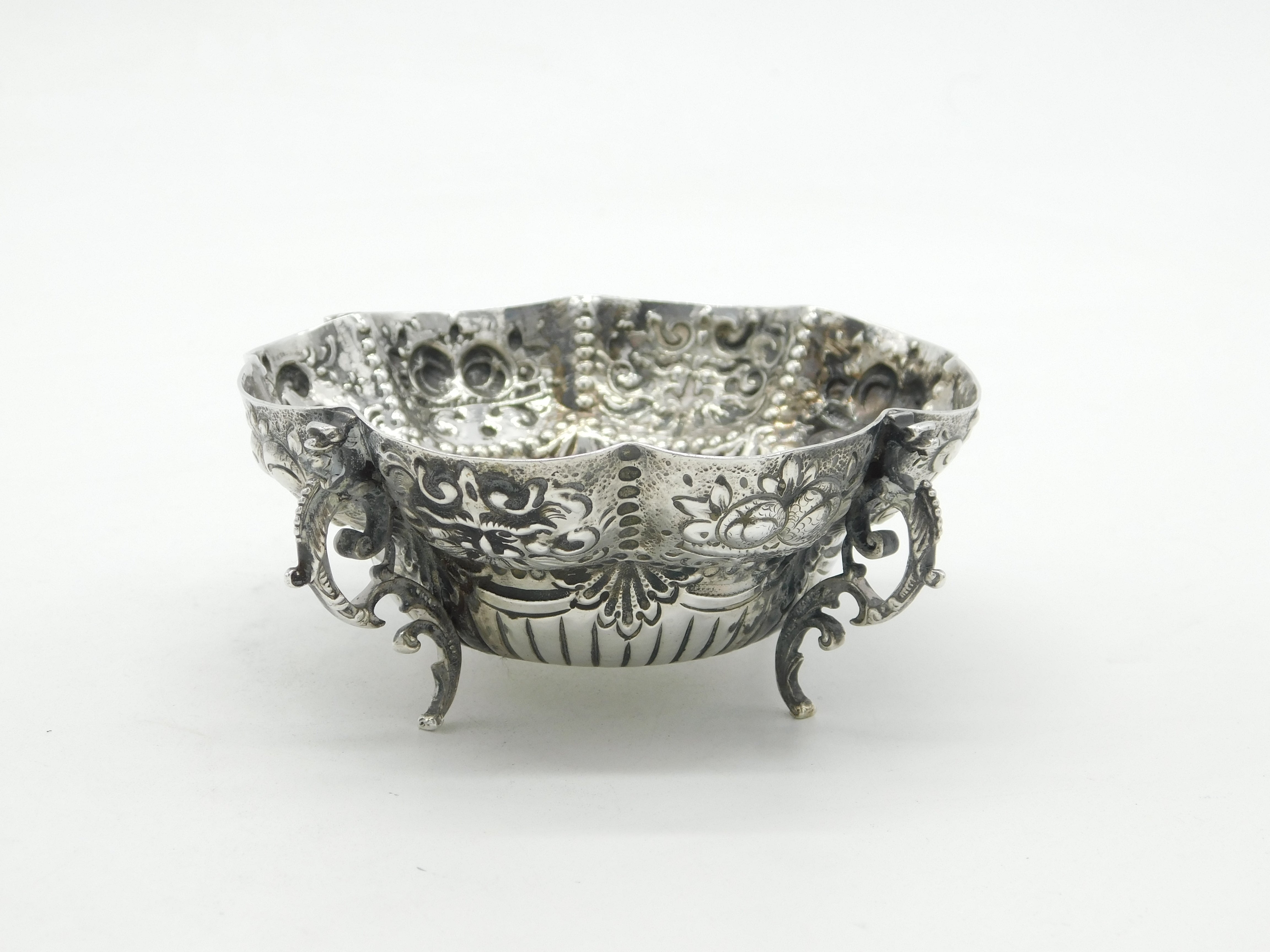 Victorian Sterling Silver Floral Pattern Sweet Treat Bowl 1885 London Antique