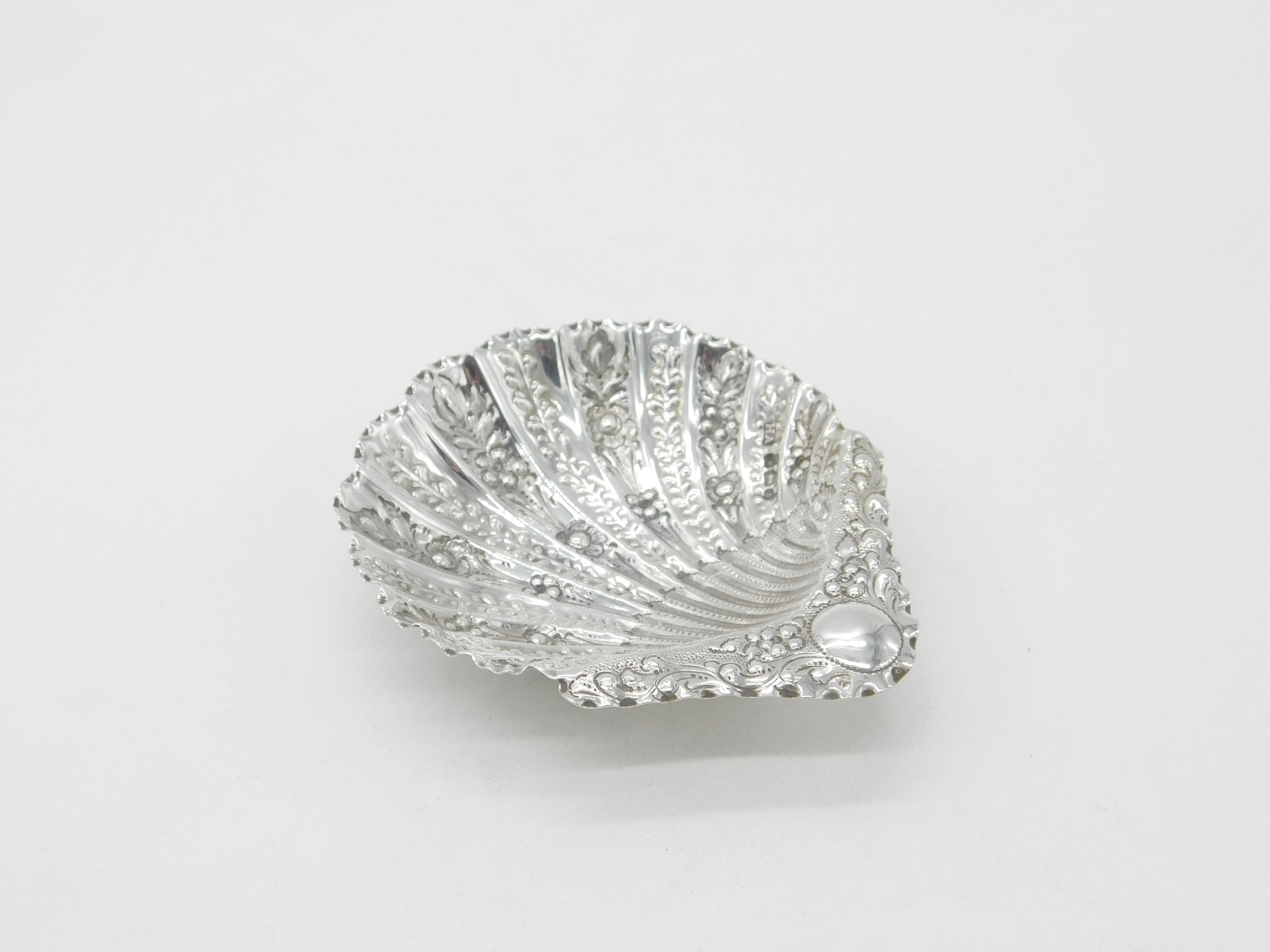 Victorian Sterling Silver Floral Pattern Shell Form Butter Dish 1890 Sheffield