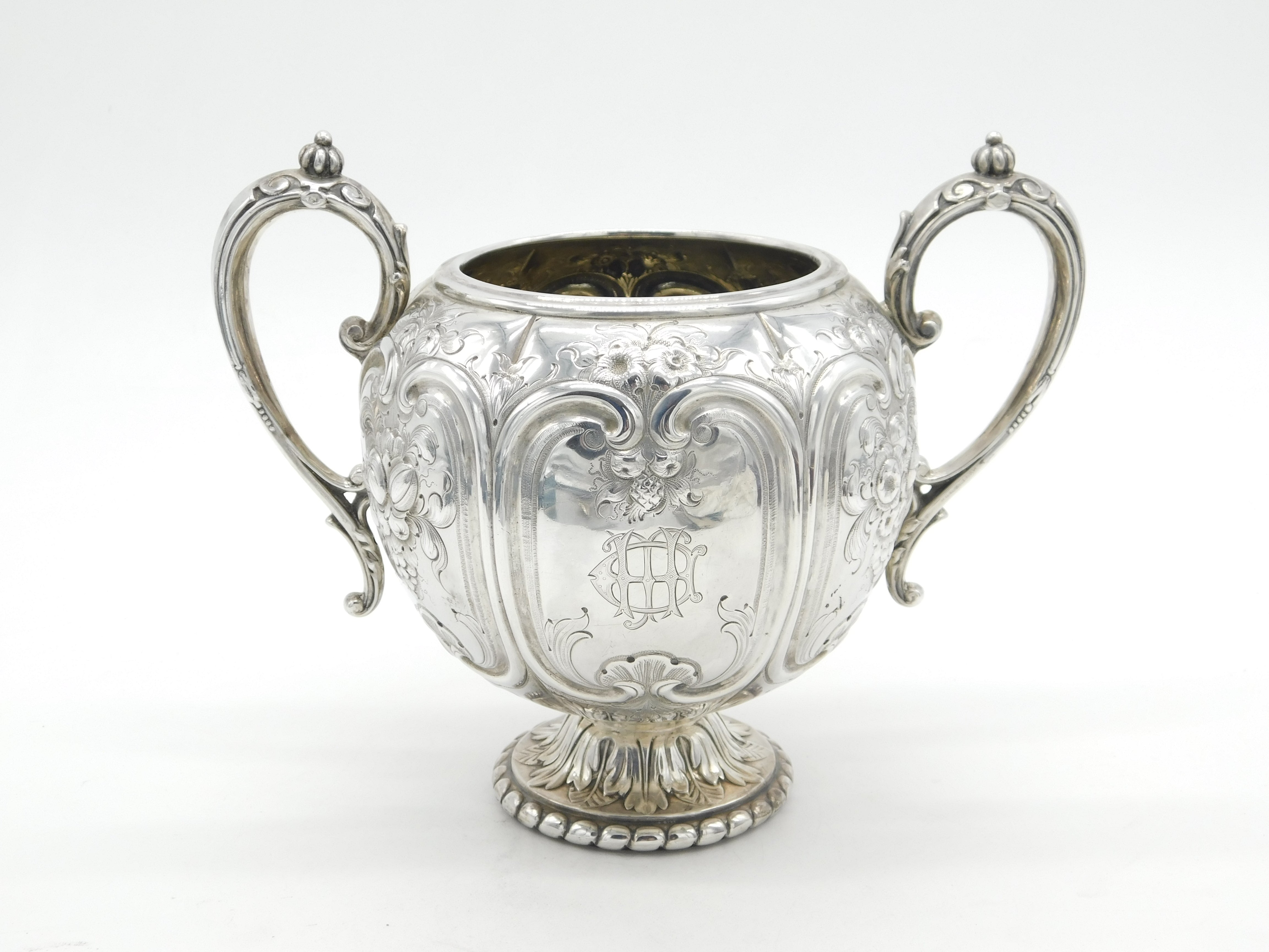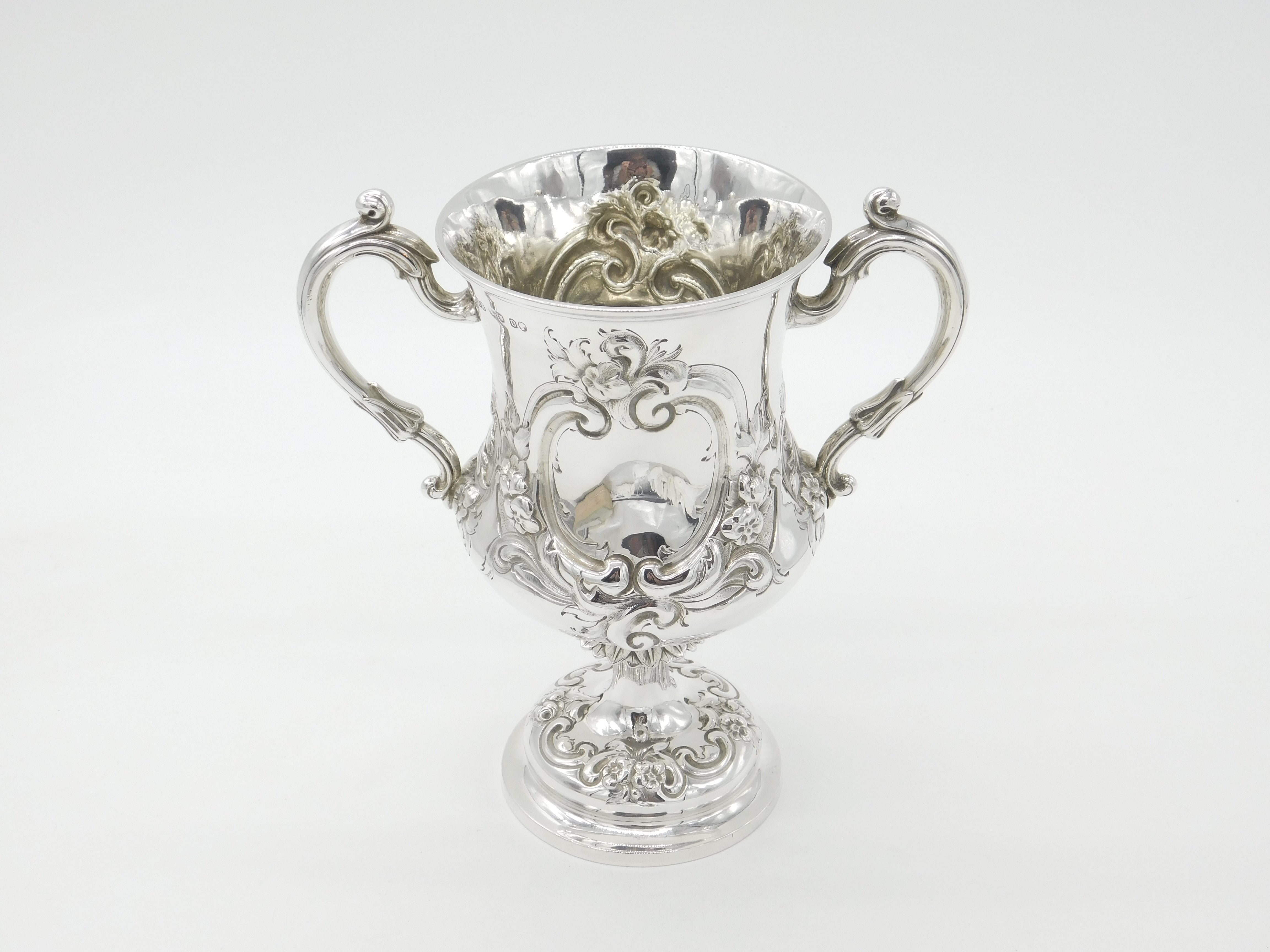 Victorian Sterling Silver Floral Repousse Trophy Cup 1869 Henry Holland Antique