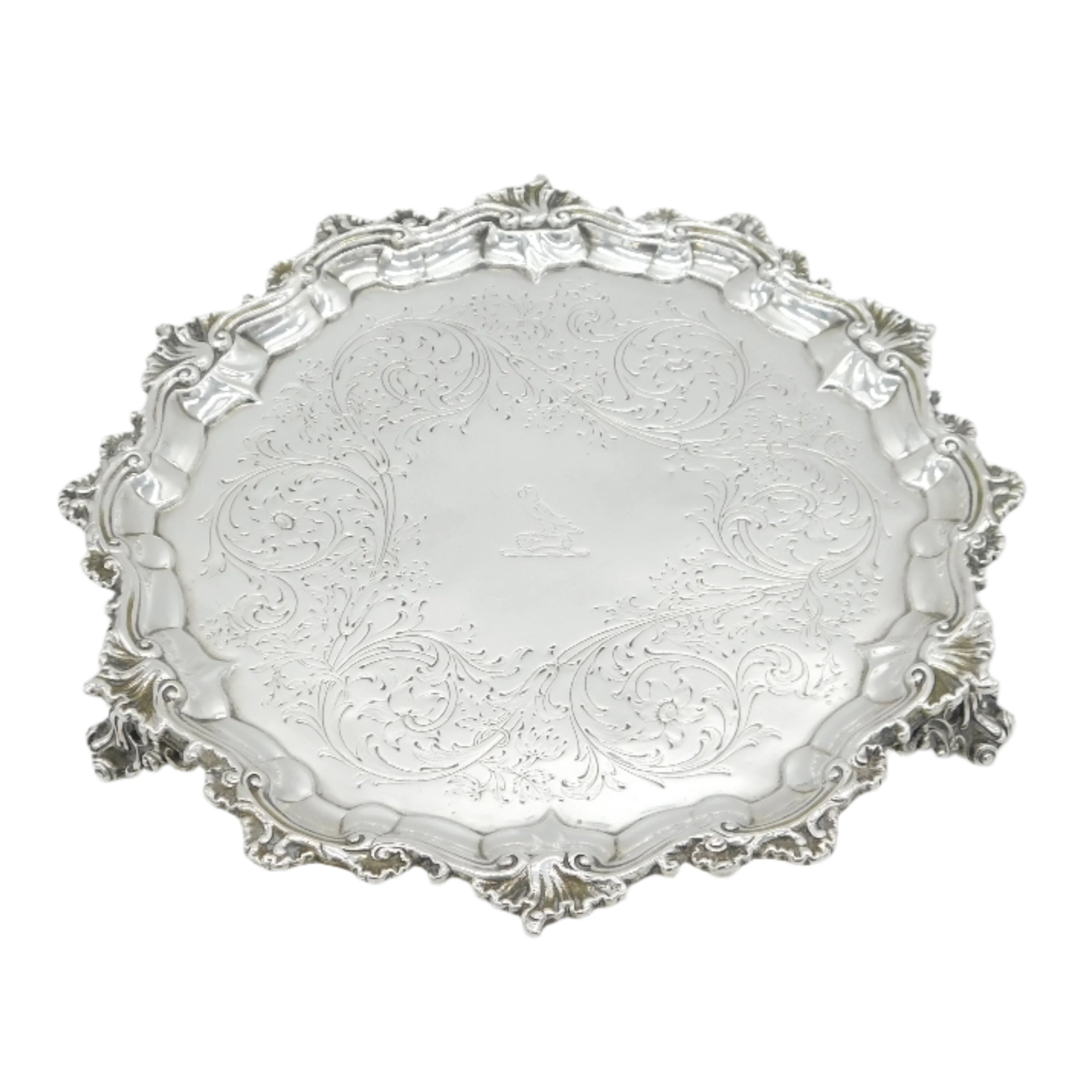 Victorian Sterling Silver Floral Salver Antique 1846 London Hunt & Roskell