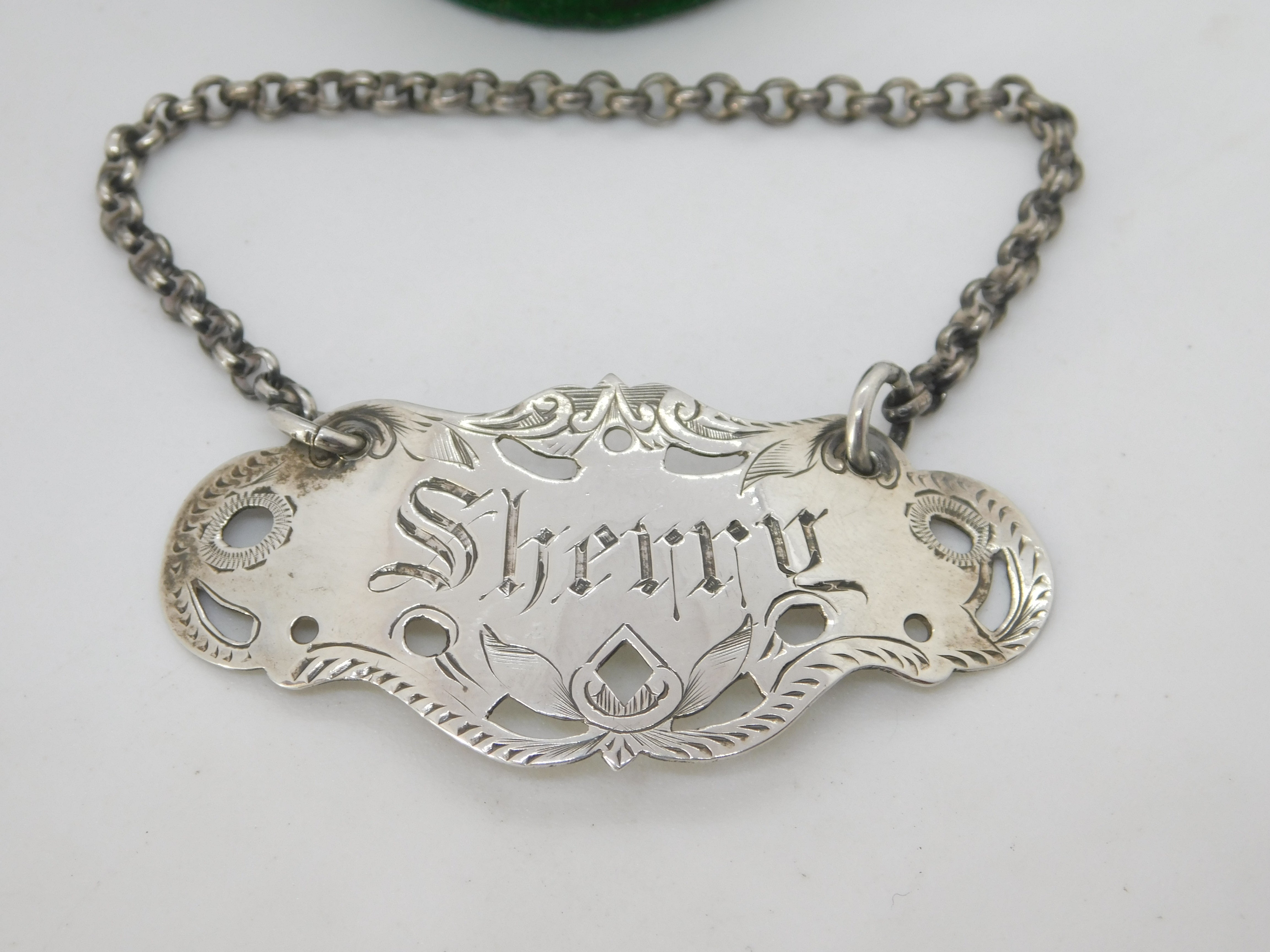 Victorian Sterling Silver Floral Sherry Decanter Label Antique 1893 Birmingham