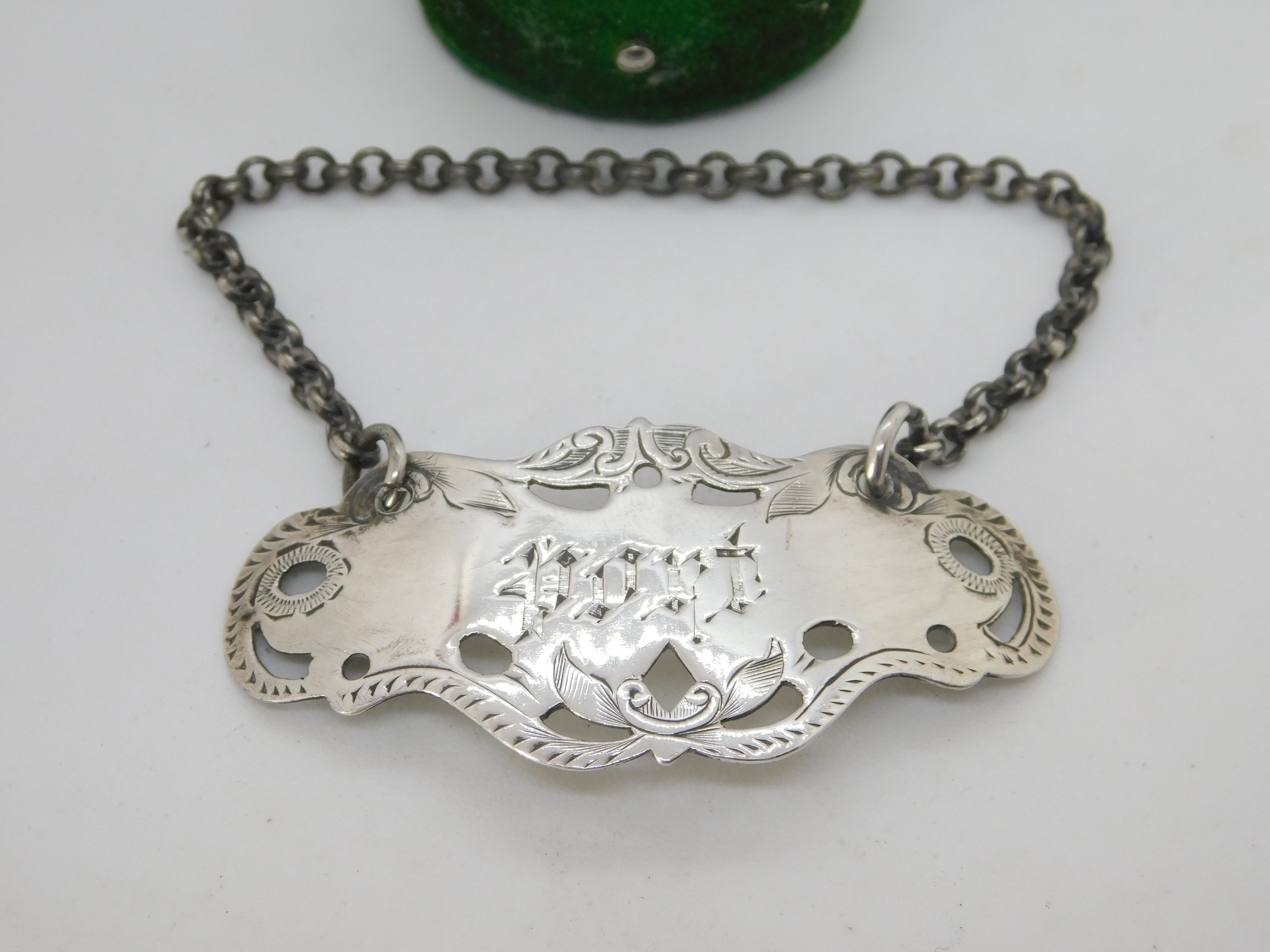 Victorian Sterling Silver Floral Port Decanter Label Antique 1893 Birmingham