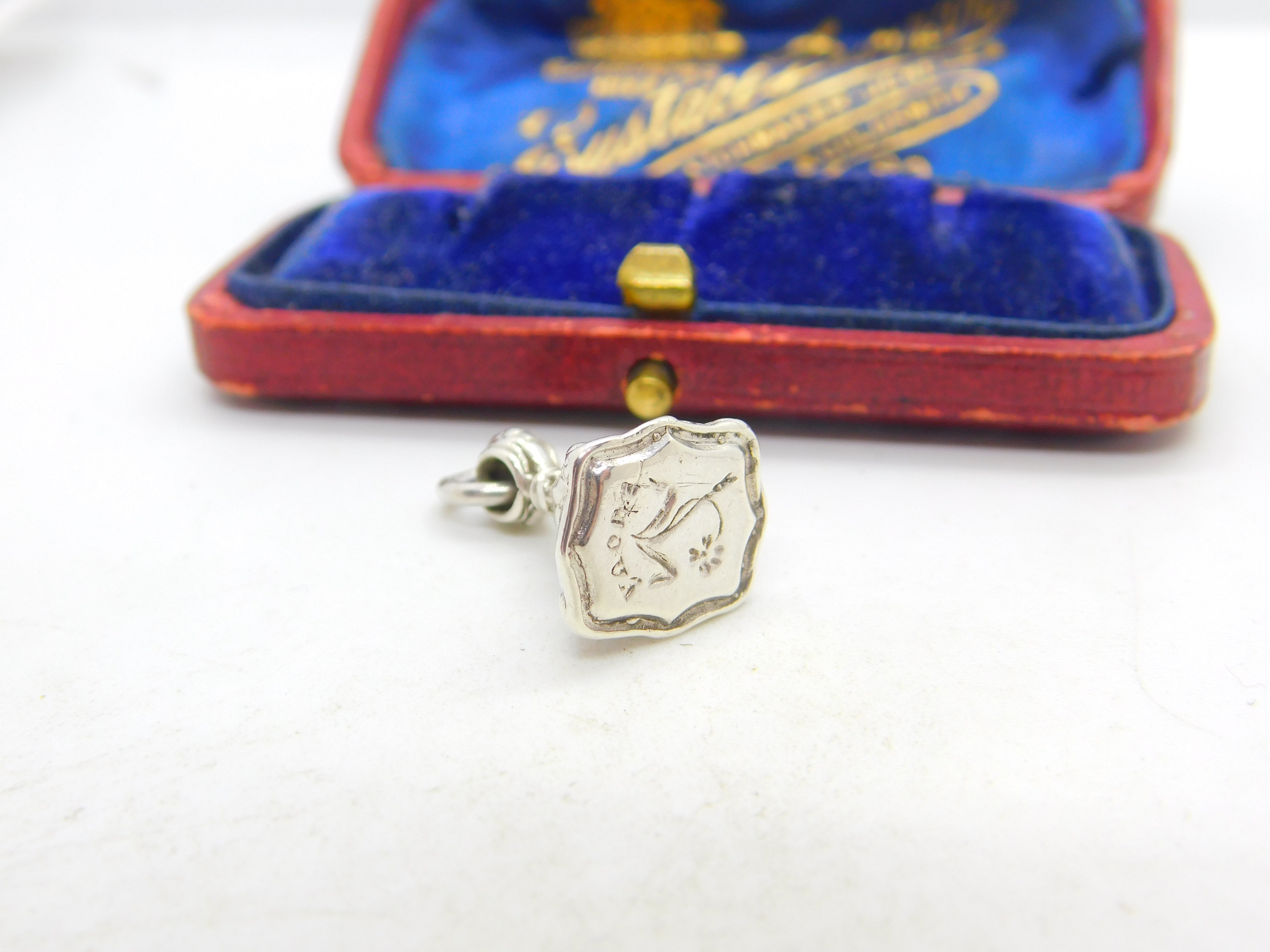 Victorian Sterling Silver Floral Sweetheart Fob Seal Intaglio Pendant c1860