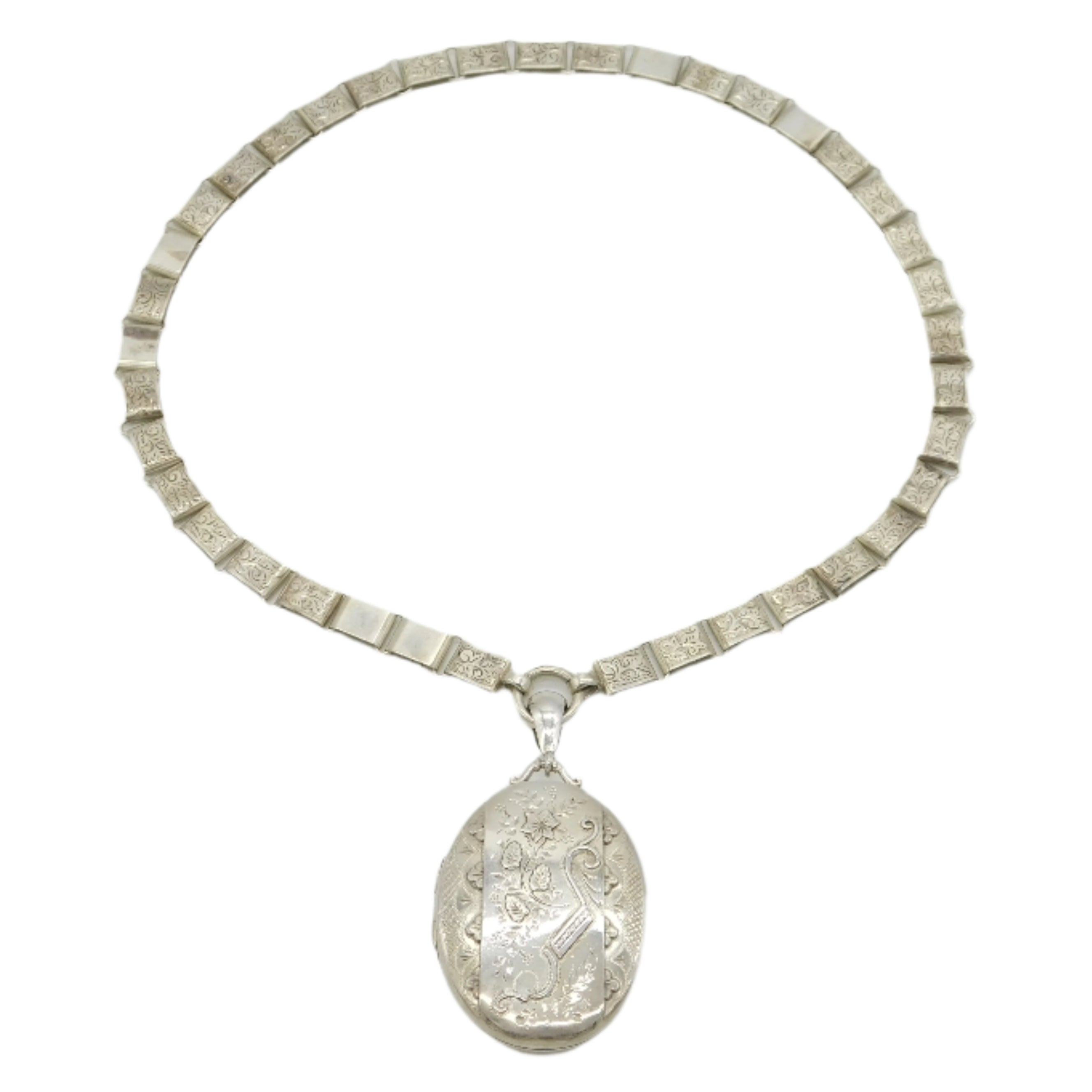 Victorian Sterling Silver Floral Sweetheart Locket Collar Necklace Antique 1885 Birmingham