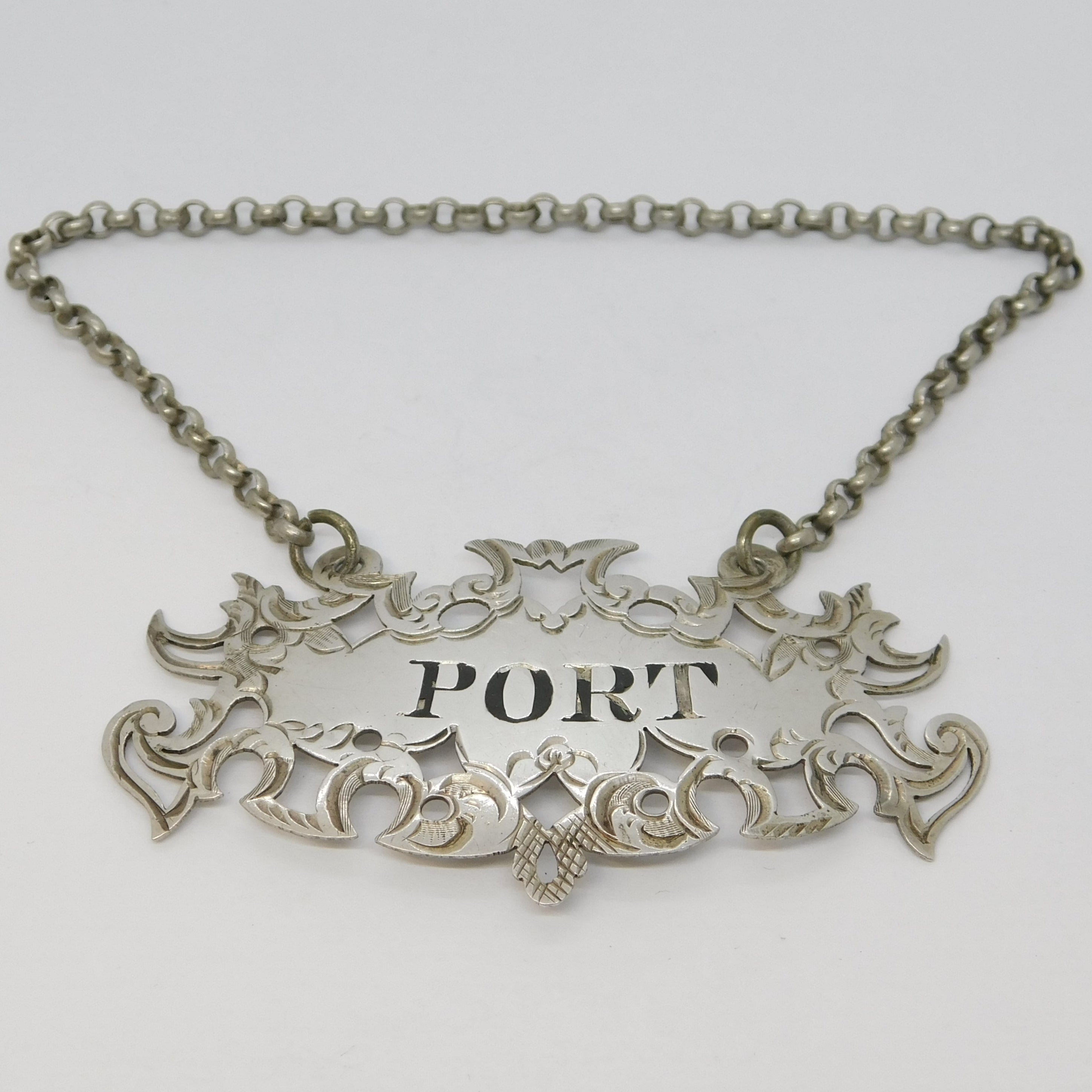 Victorian Sterling Silver Floral Port Decanter Label Antique 1854 Birmingham
