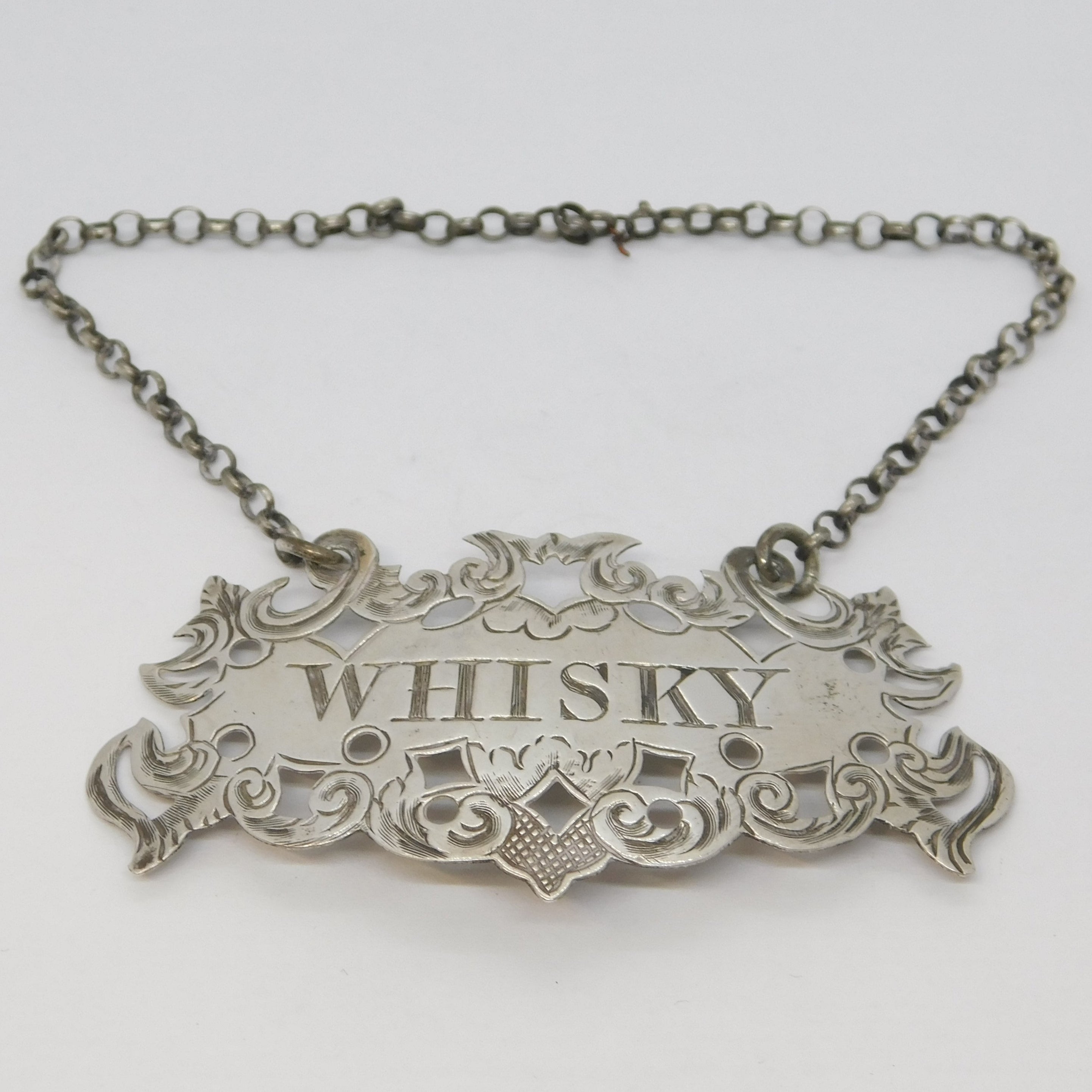 Victorian Sterling Silver Floral Whisky Decanter Label Antique 1855 Birmingham