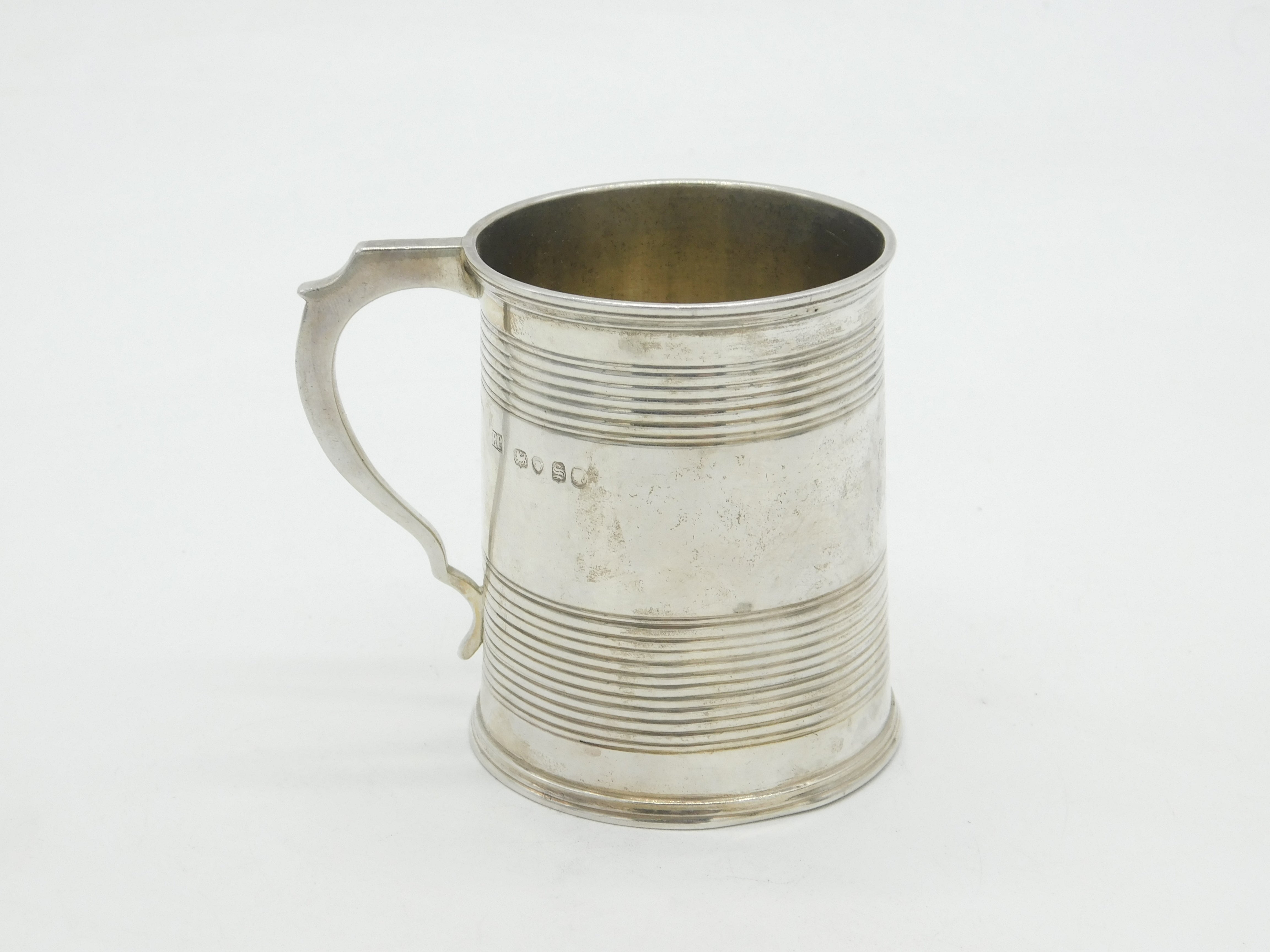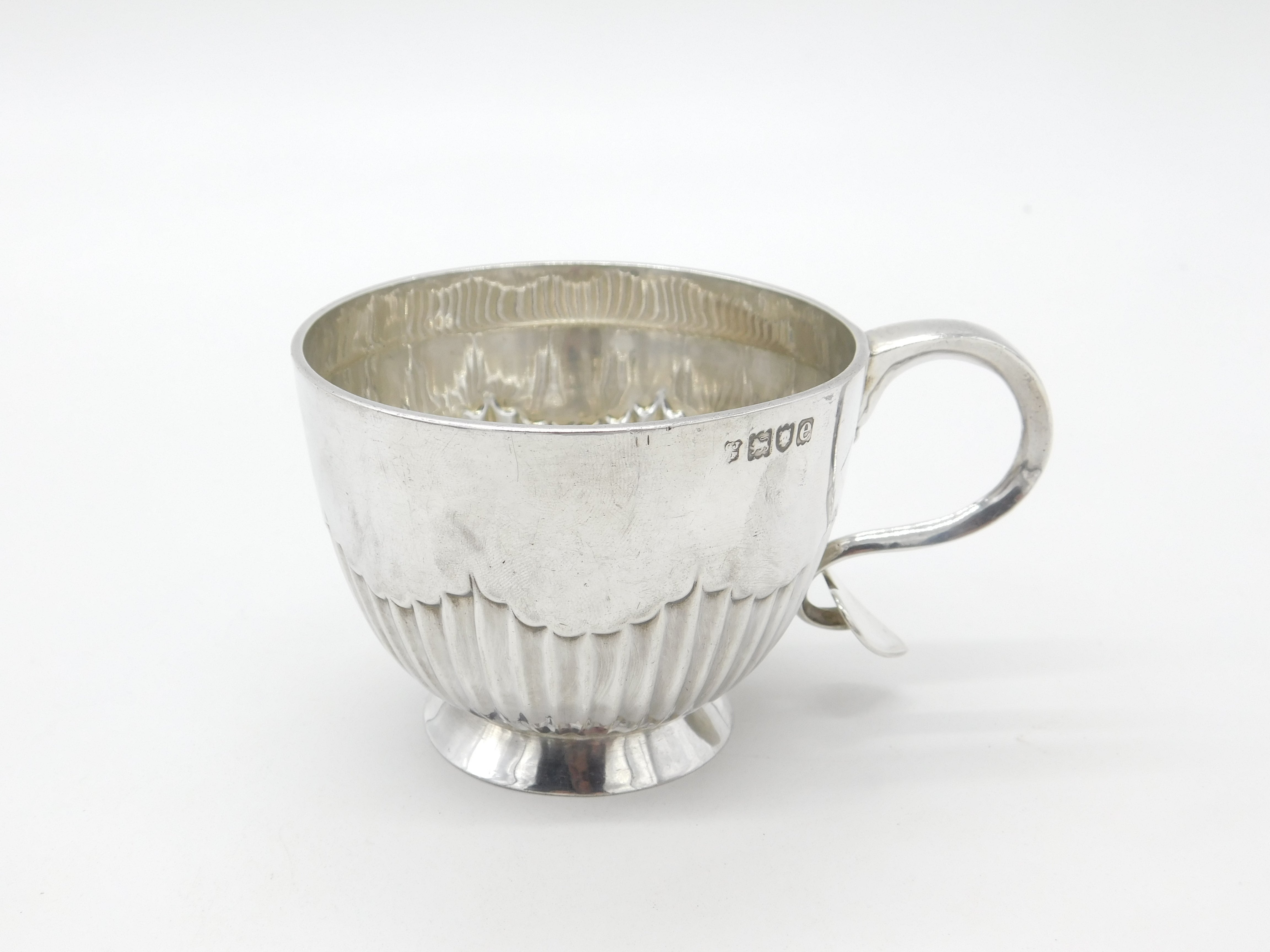 Victorian Sterling Silver Lined Pattern Christening Mug Antique 1853 London