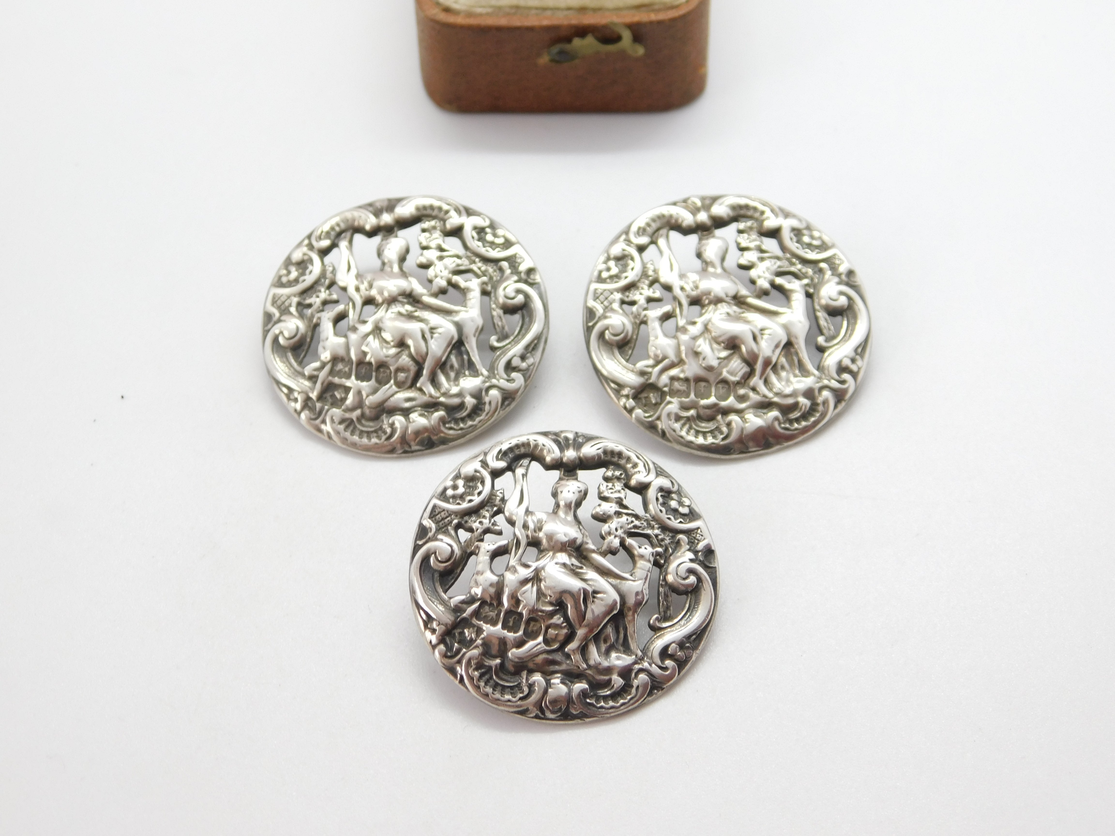 Victorian Sterling Silver Lady with Dog Dress Buttons 1901 London Antique