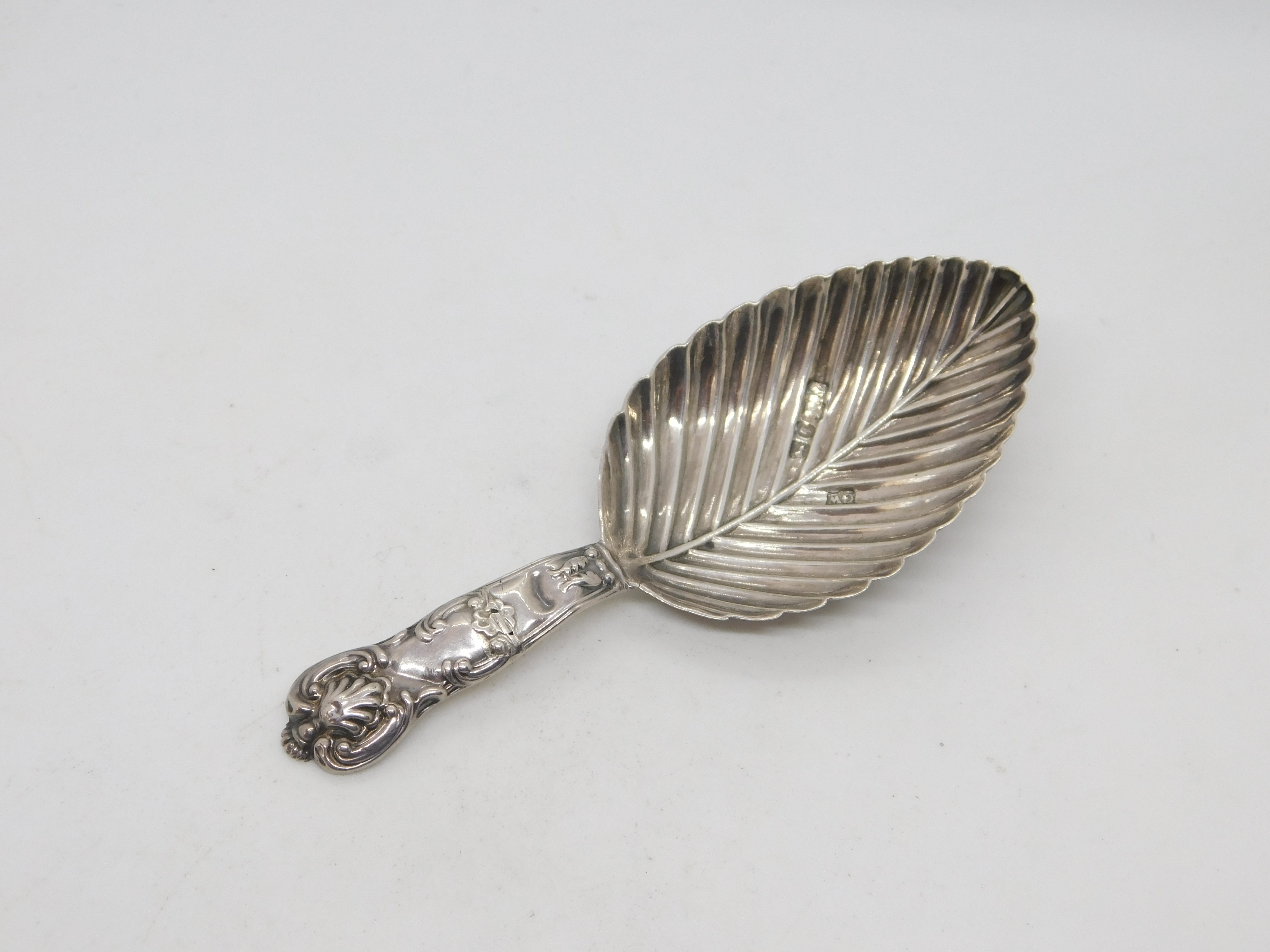 Victorian Sterling Silver Leaf Form Tea Caddy Spoon Antique 1842 Birmingham
