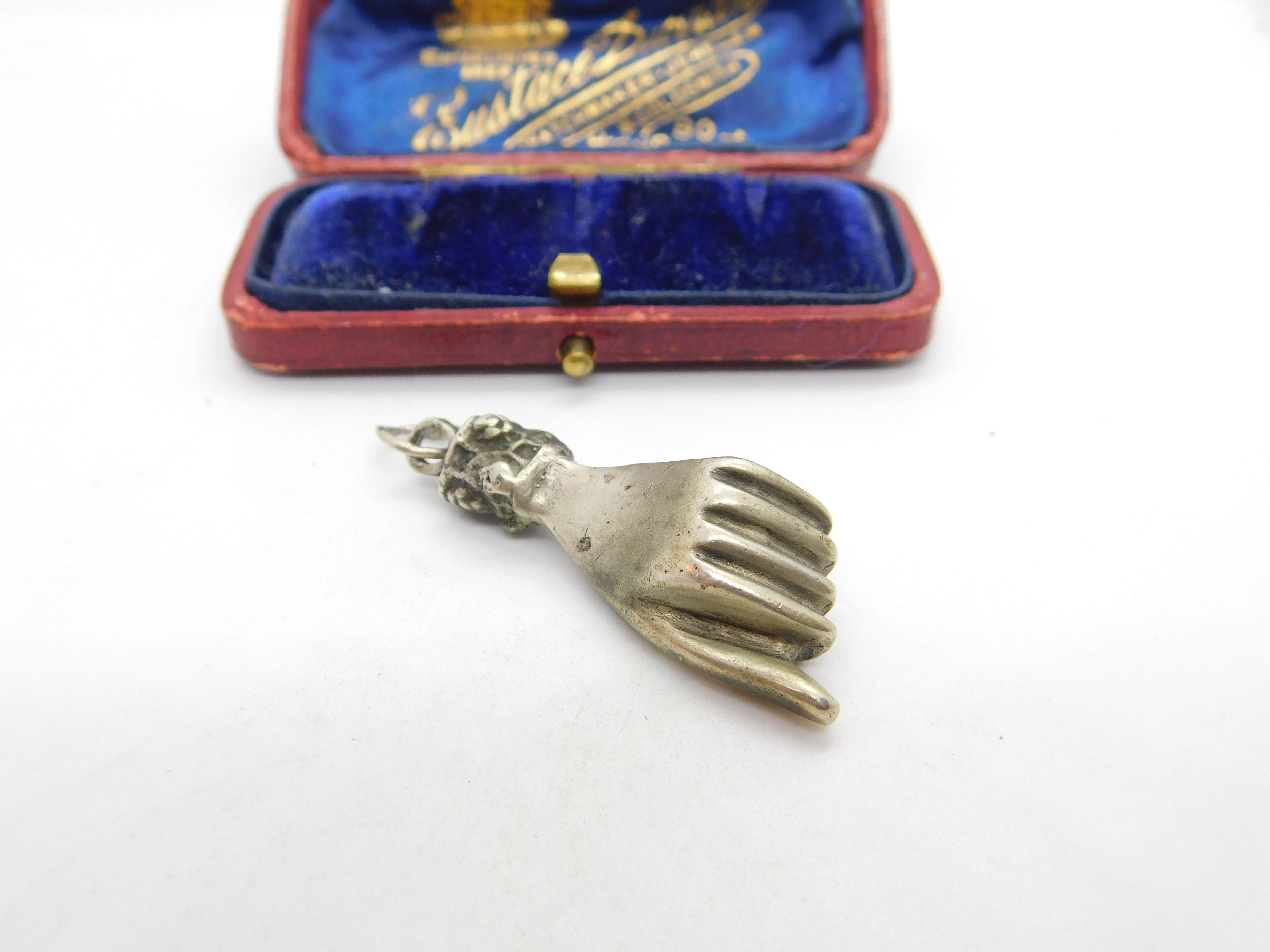 Victorian Sterling Silver Large Figa Hand Pendant Antique c1880