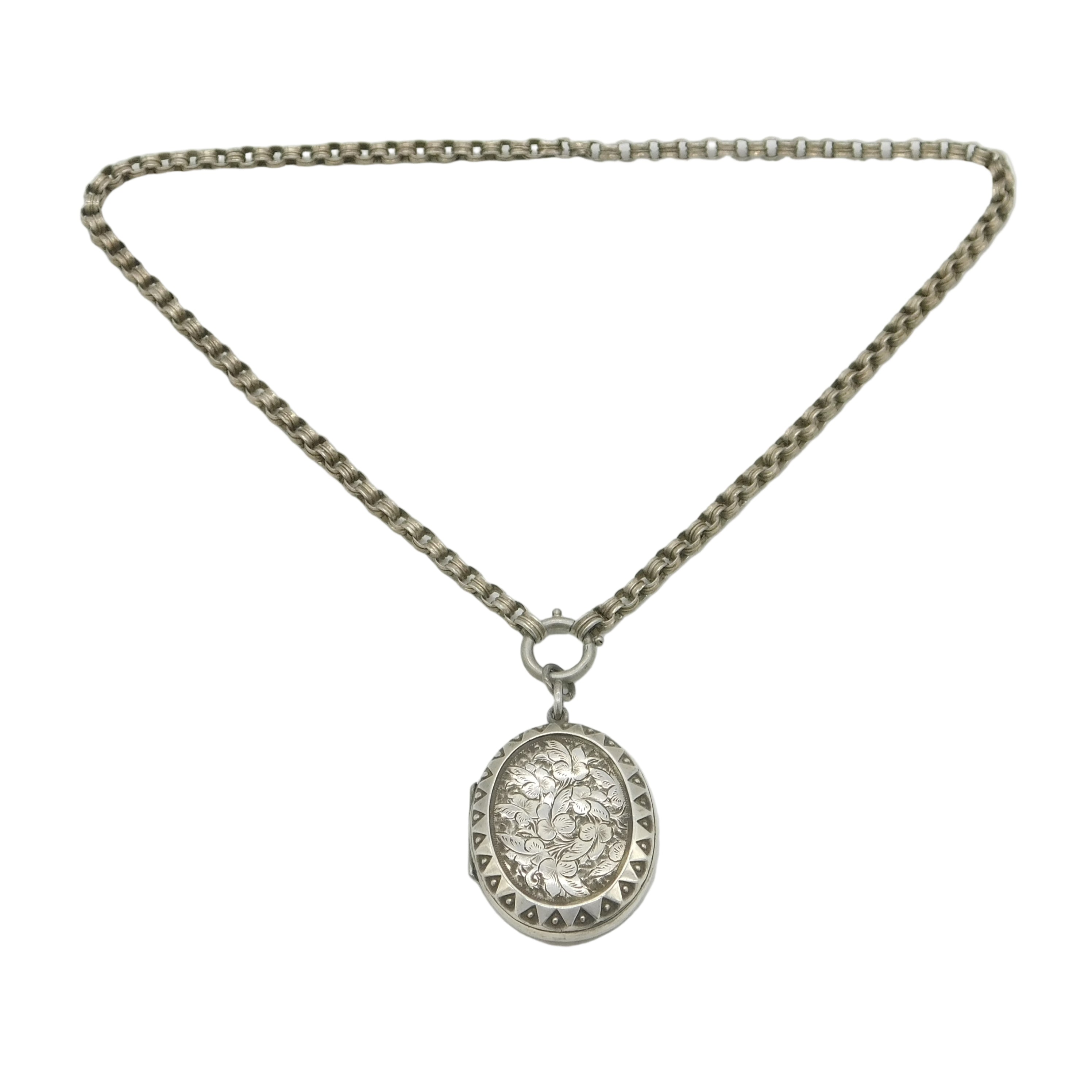 Victorian Sterling Silver Ivy Leaf Pattern Locket Necklace Antique c1880