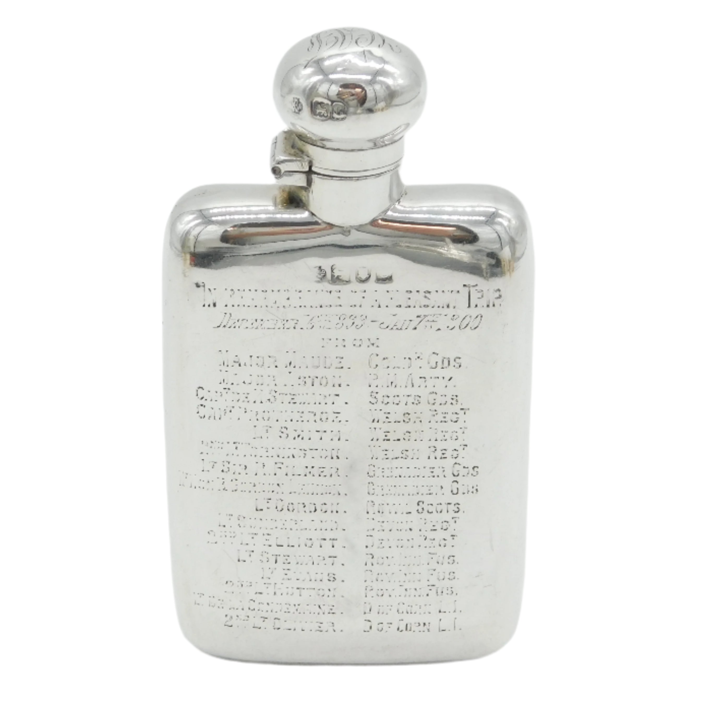Victorian Sterling Silver Military Interest Hip Flask Antique 1898 London