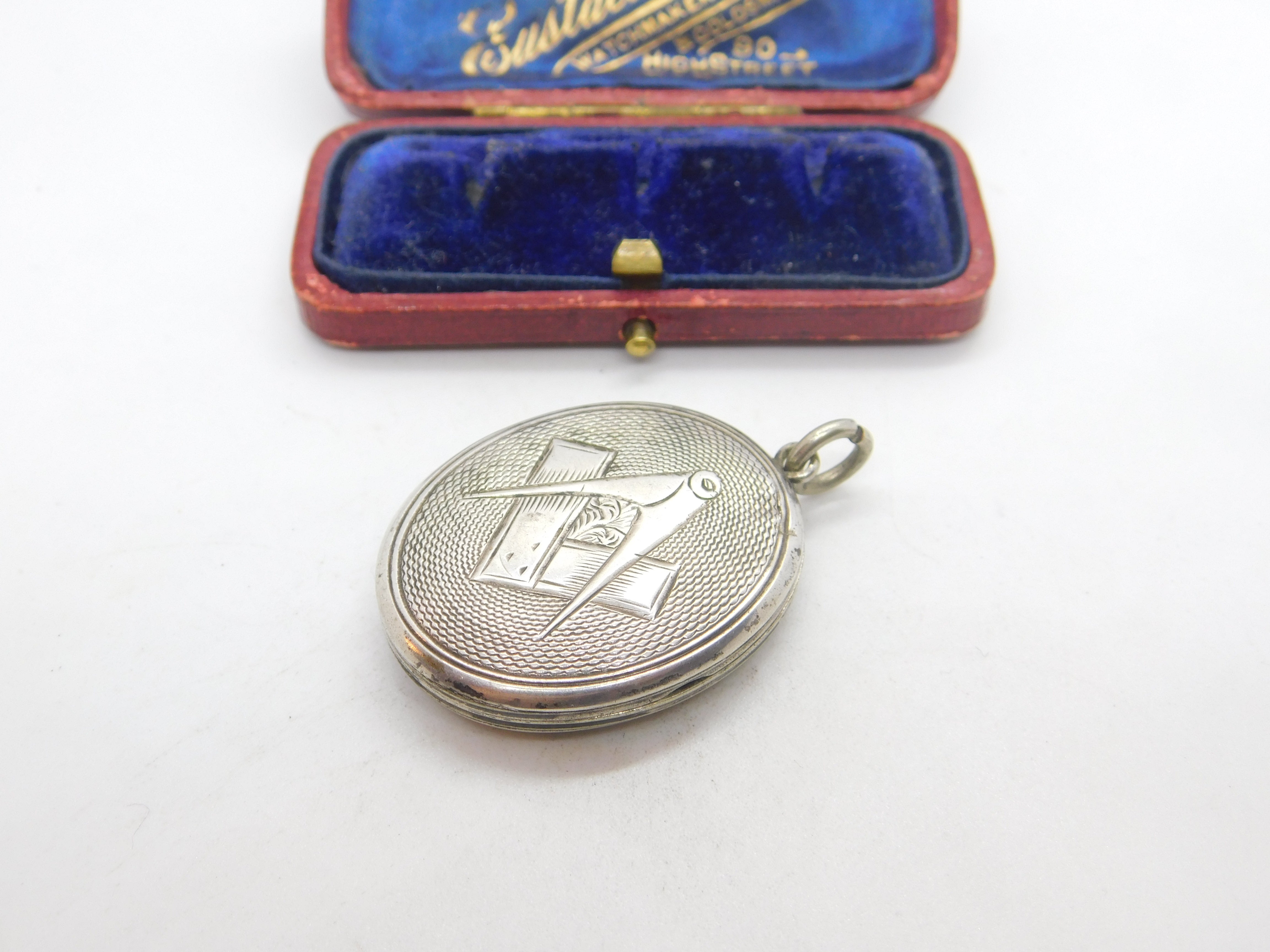 Victorian Sterling Silver Masonic Compass Locket Pendant Antique c1890