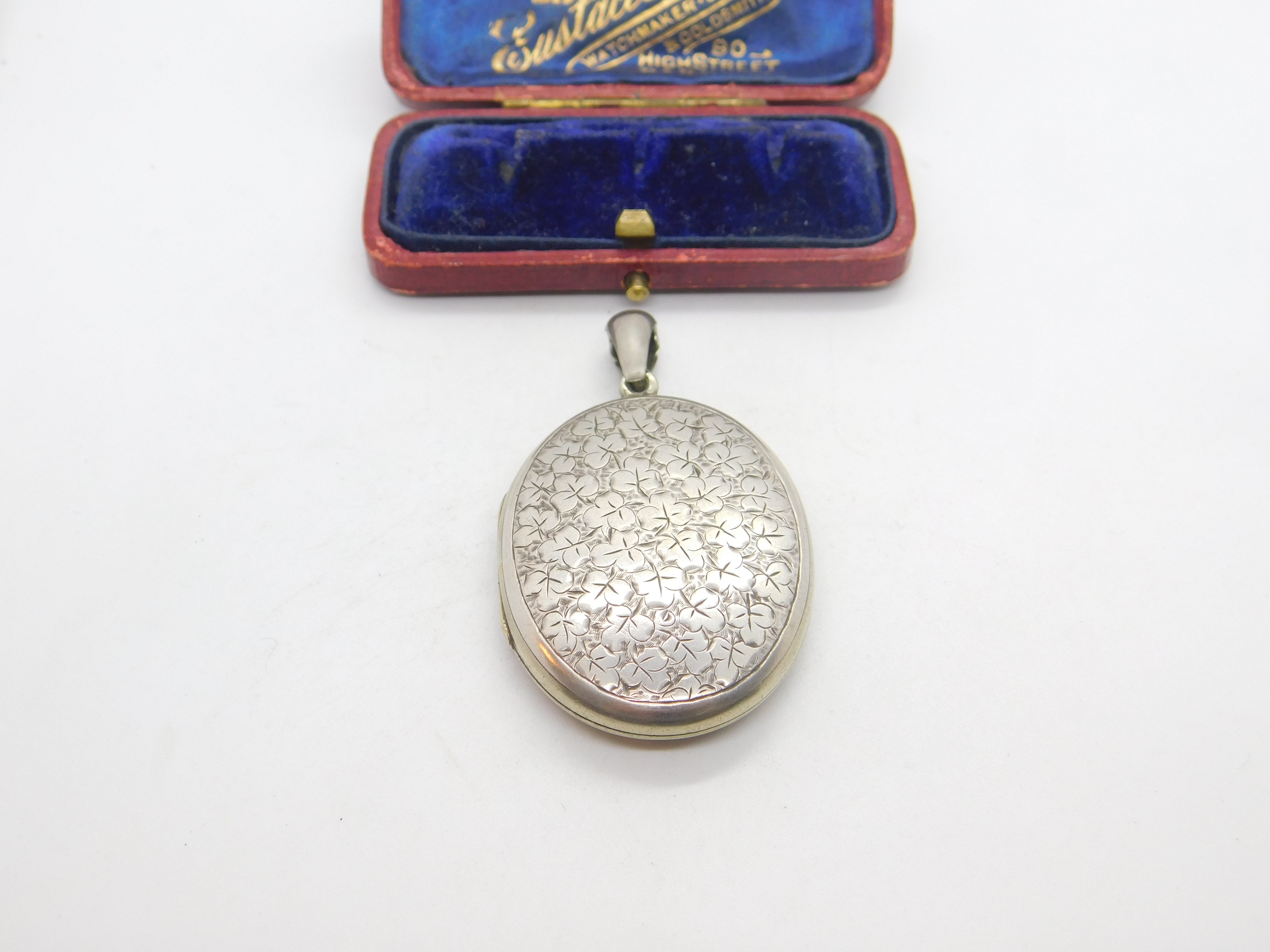 Victorian Sterling Silver Lucky Shamrock Sweetheart Locket Antique c1880
