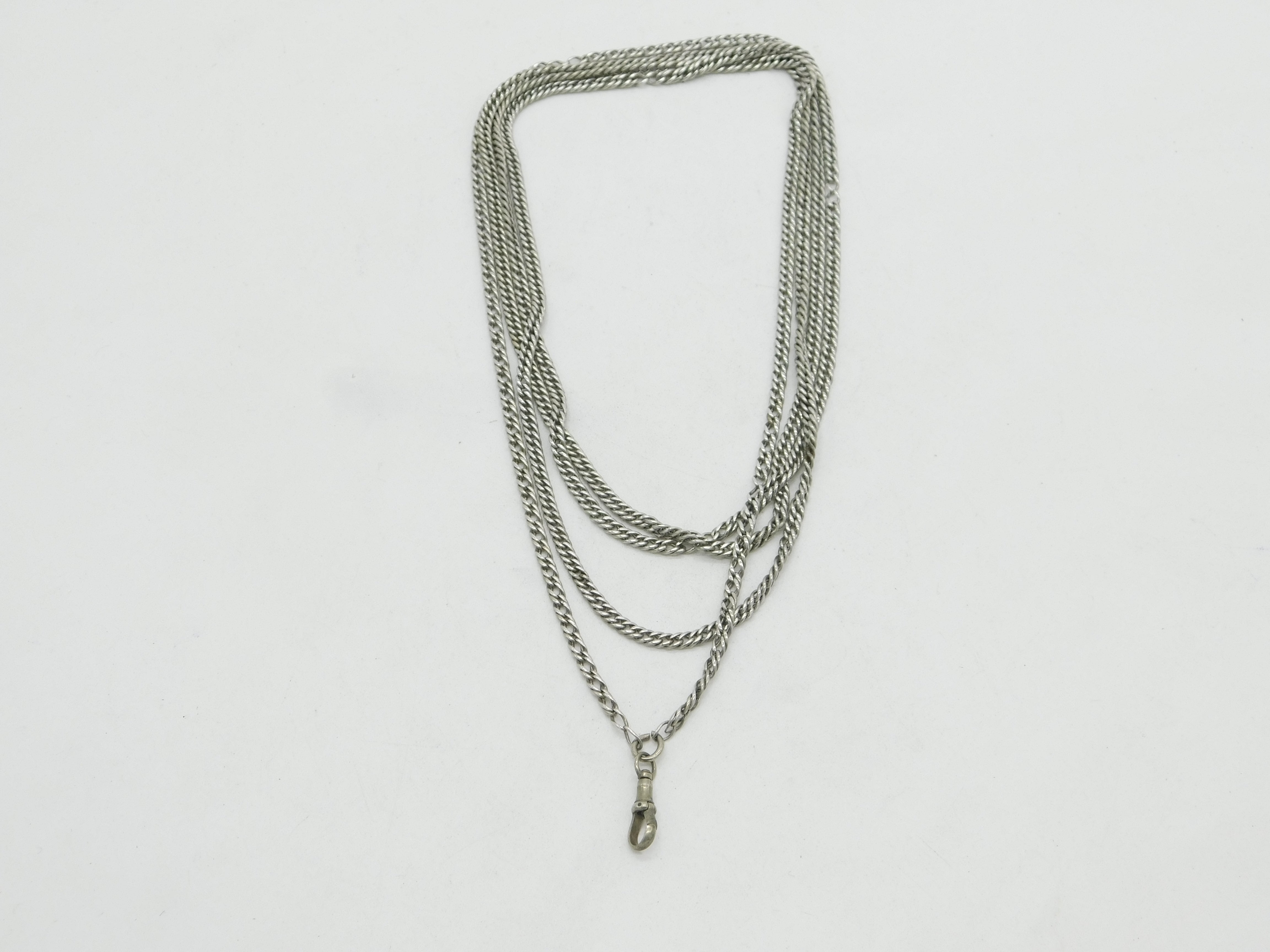 Victorian Sterling Silver Long Guard Muff Chain Antique c1860 132cm Length