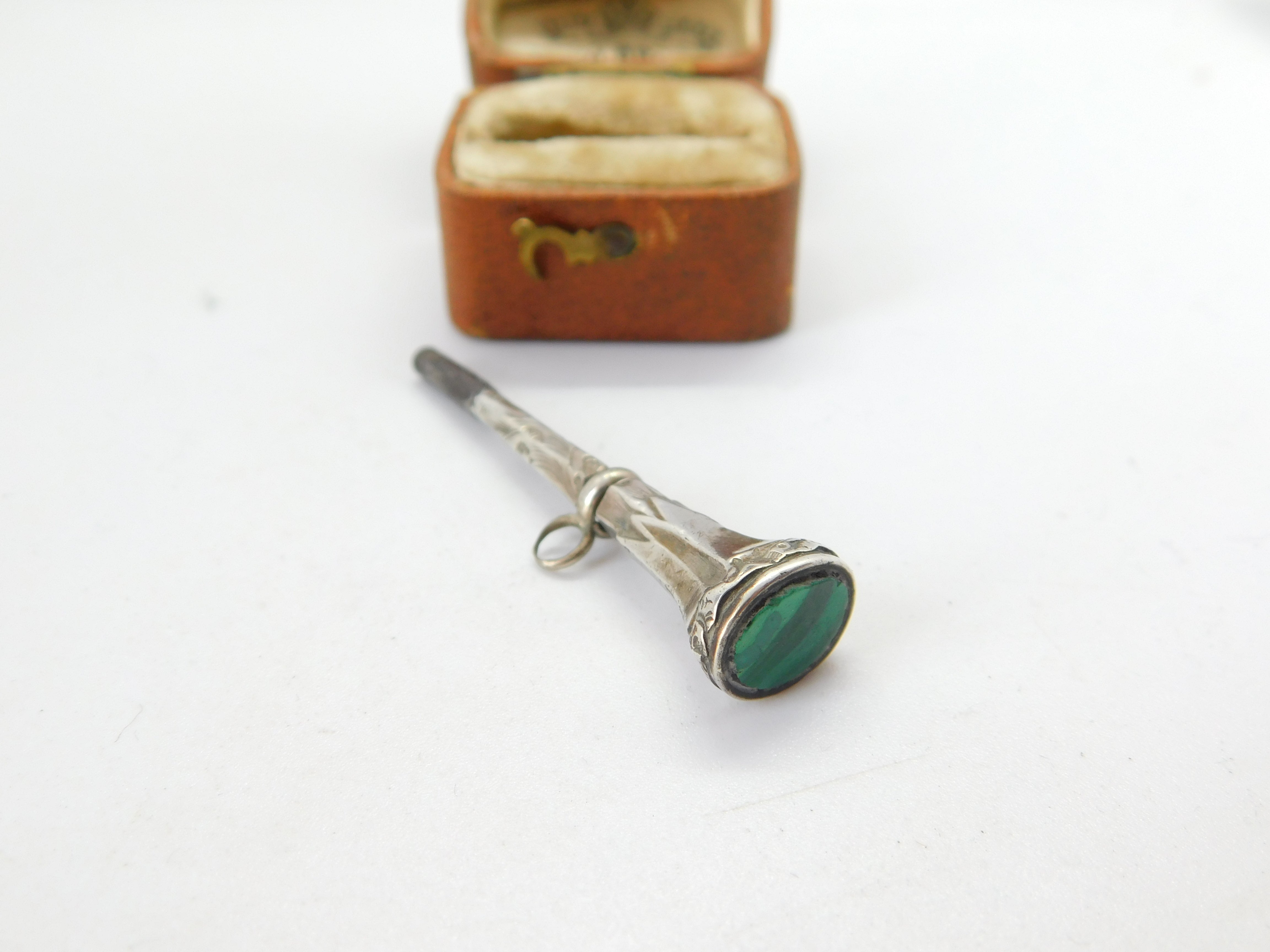 Victorian Sterling Silver Malachite Set Watch Key Fob Pendant c1890 Antique