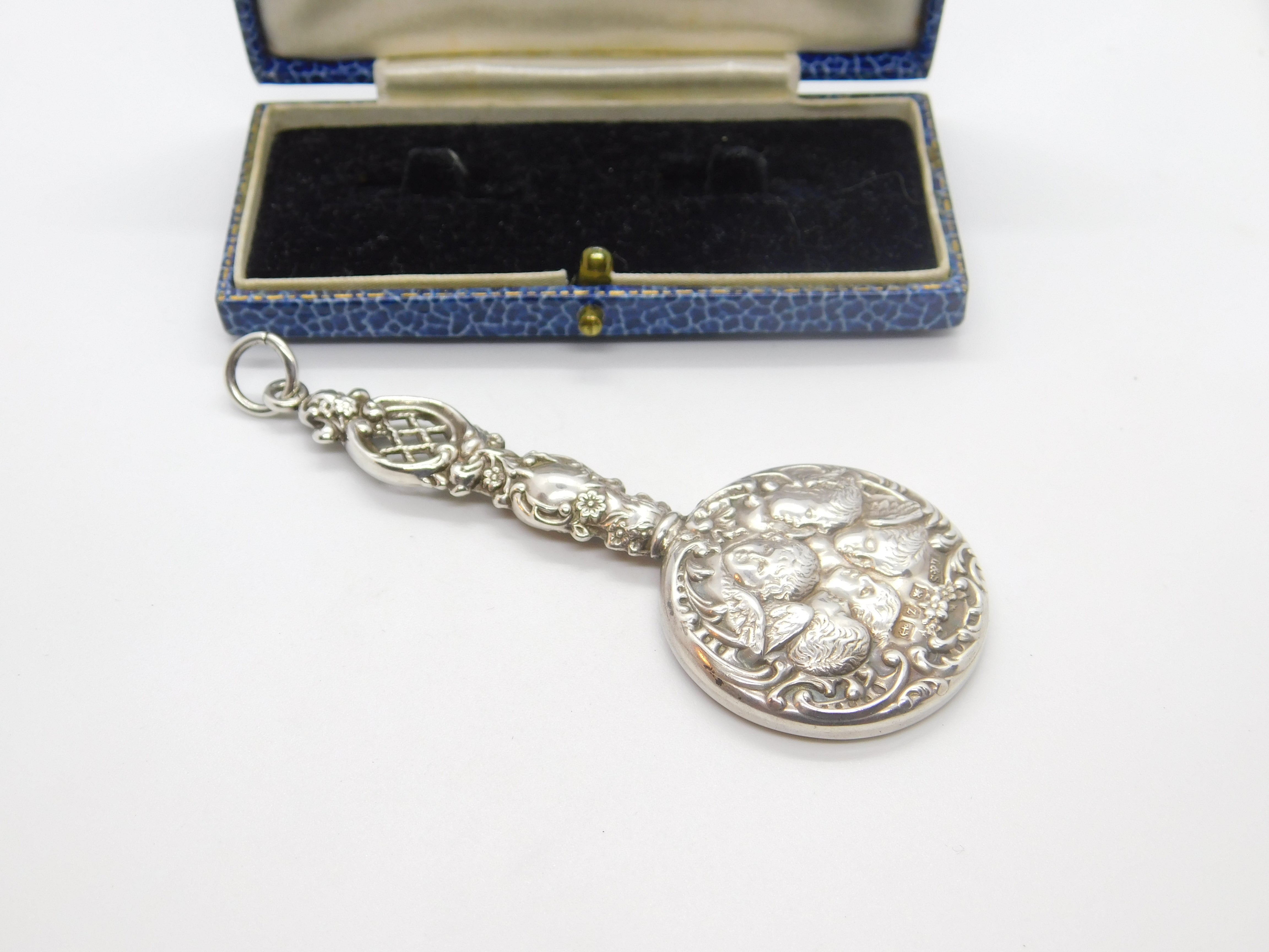 Victorian Sterling Silver Miniature Chatelaine Mirror Fob Antique 1899 Birmingham