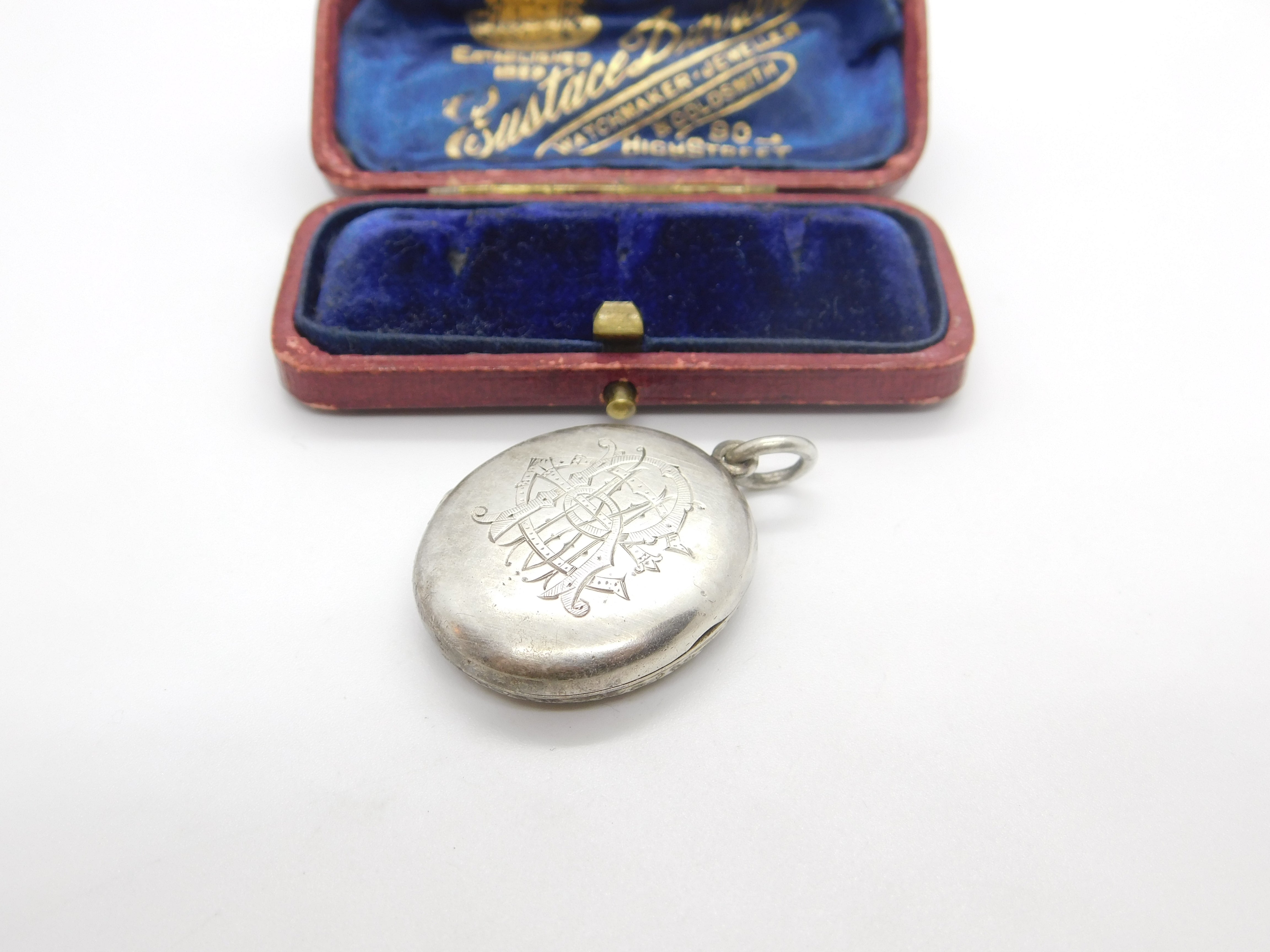 Victorian Sterling Silver Monogram Mourning Locket Pendant Antique c1860
