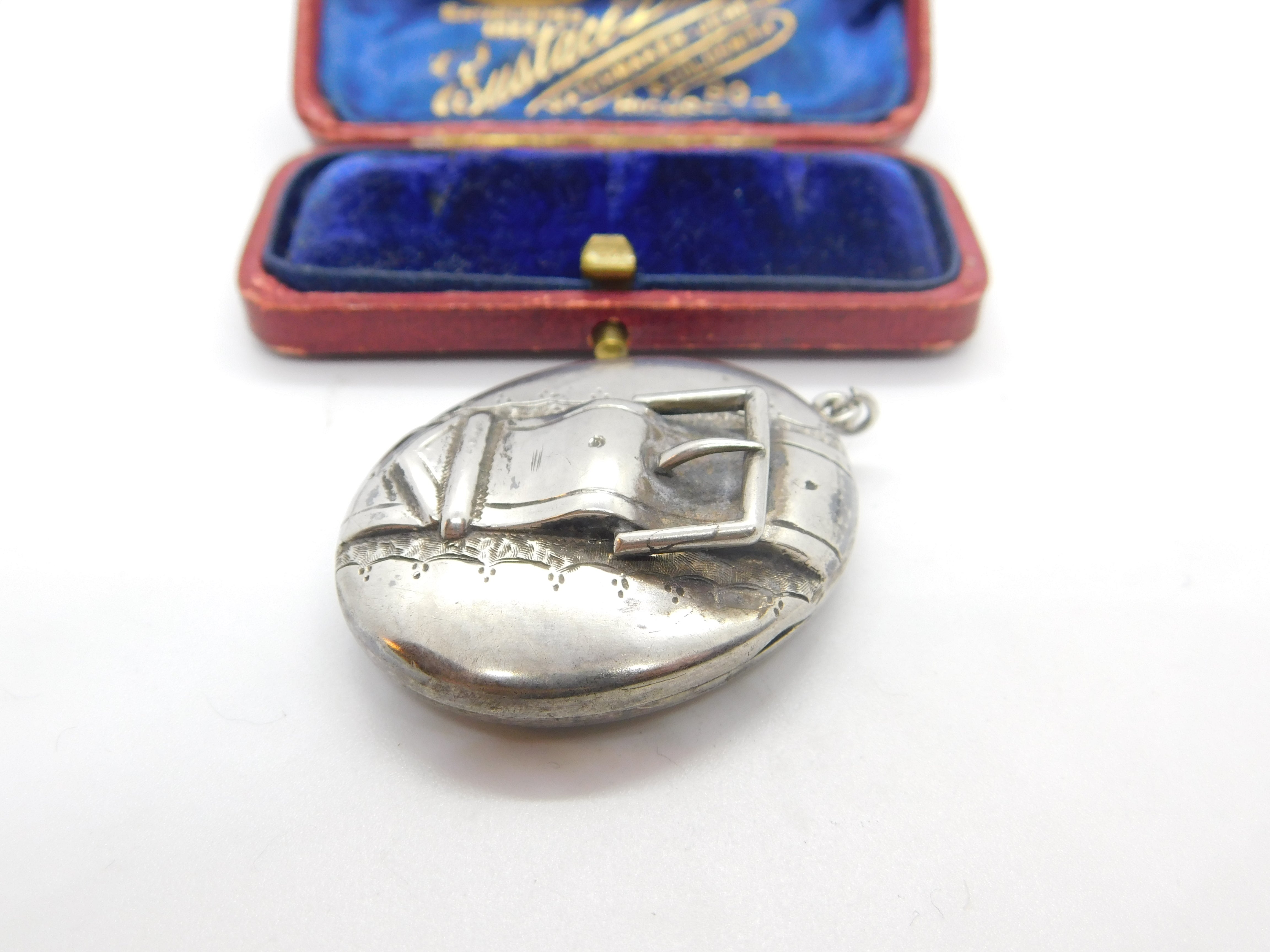Victorian Sterling Silver Mourning Buckle Form Sweetheart Locket Antique c1860