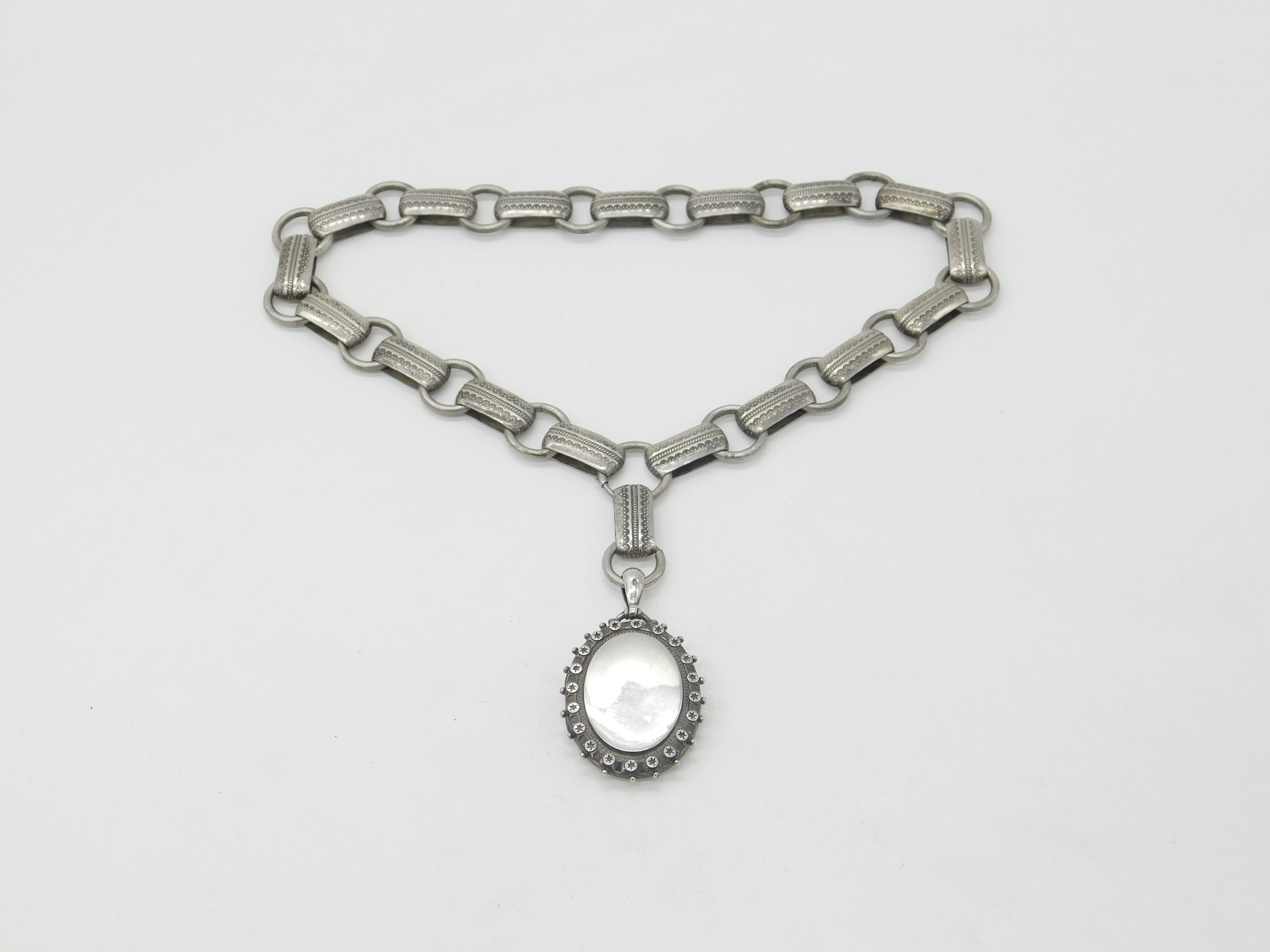 Victorian Sterling Silver Mourning Locket Collar Necklace 1892 Birmingham Antique