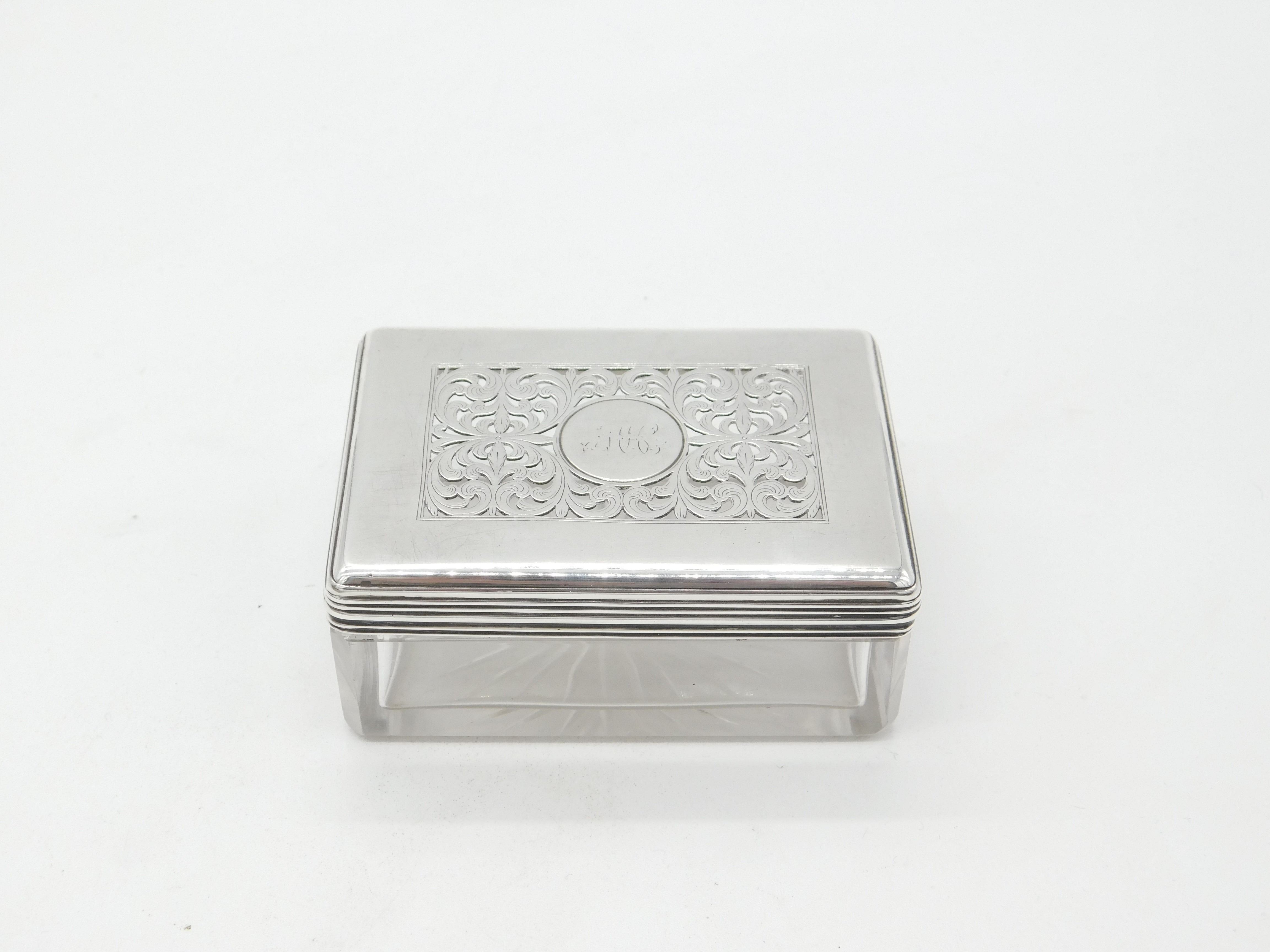Victorian Sterling Silver Moulded Glass Pierced Trinket Box 1838 London Antique