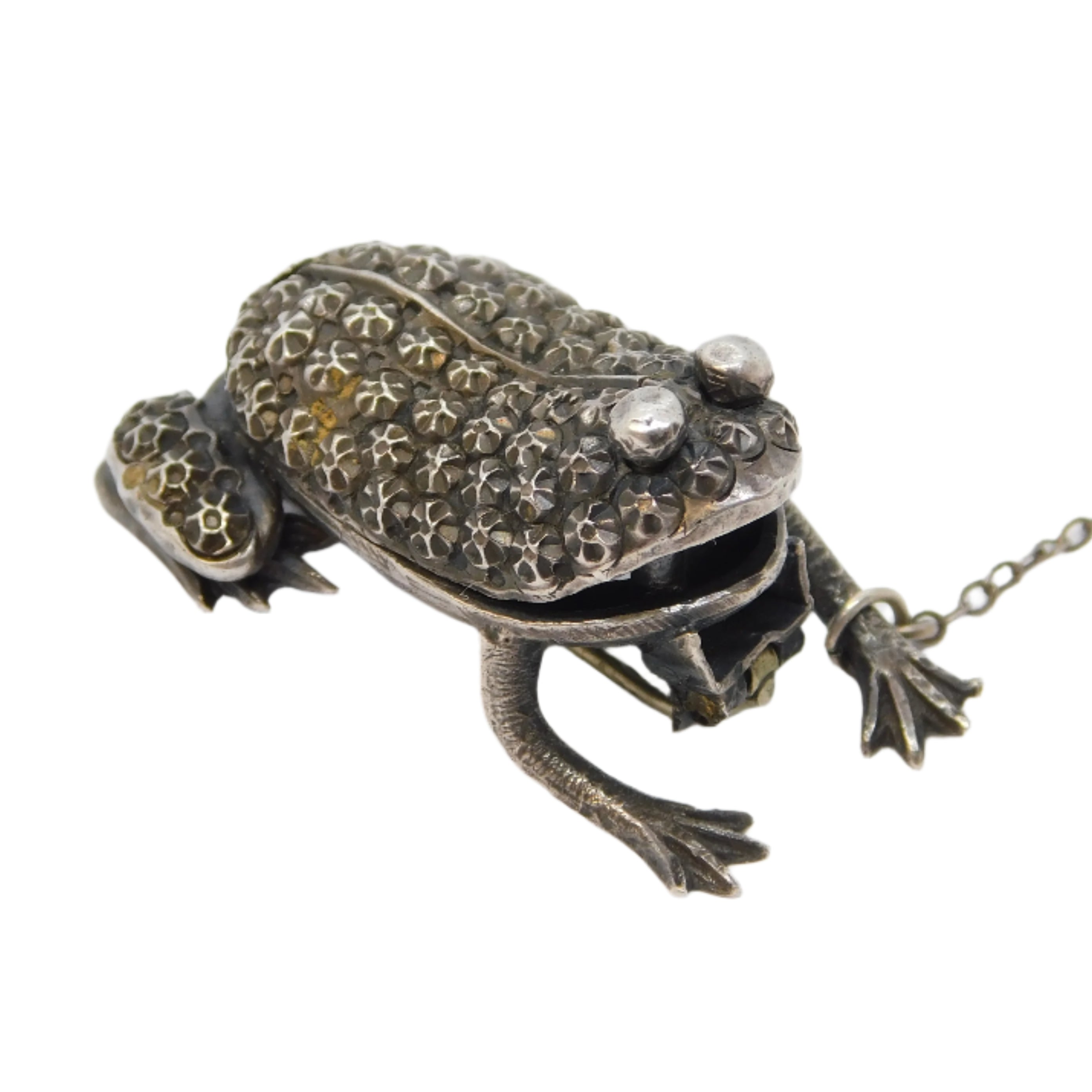 Victorian Sterling Silver Novelty Frog Form Brooch Antique c1860 Kitemark