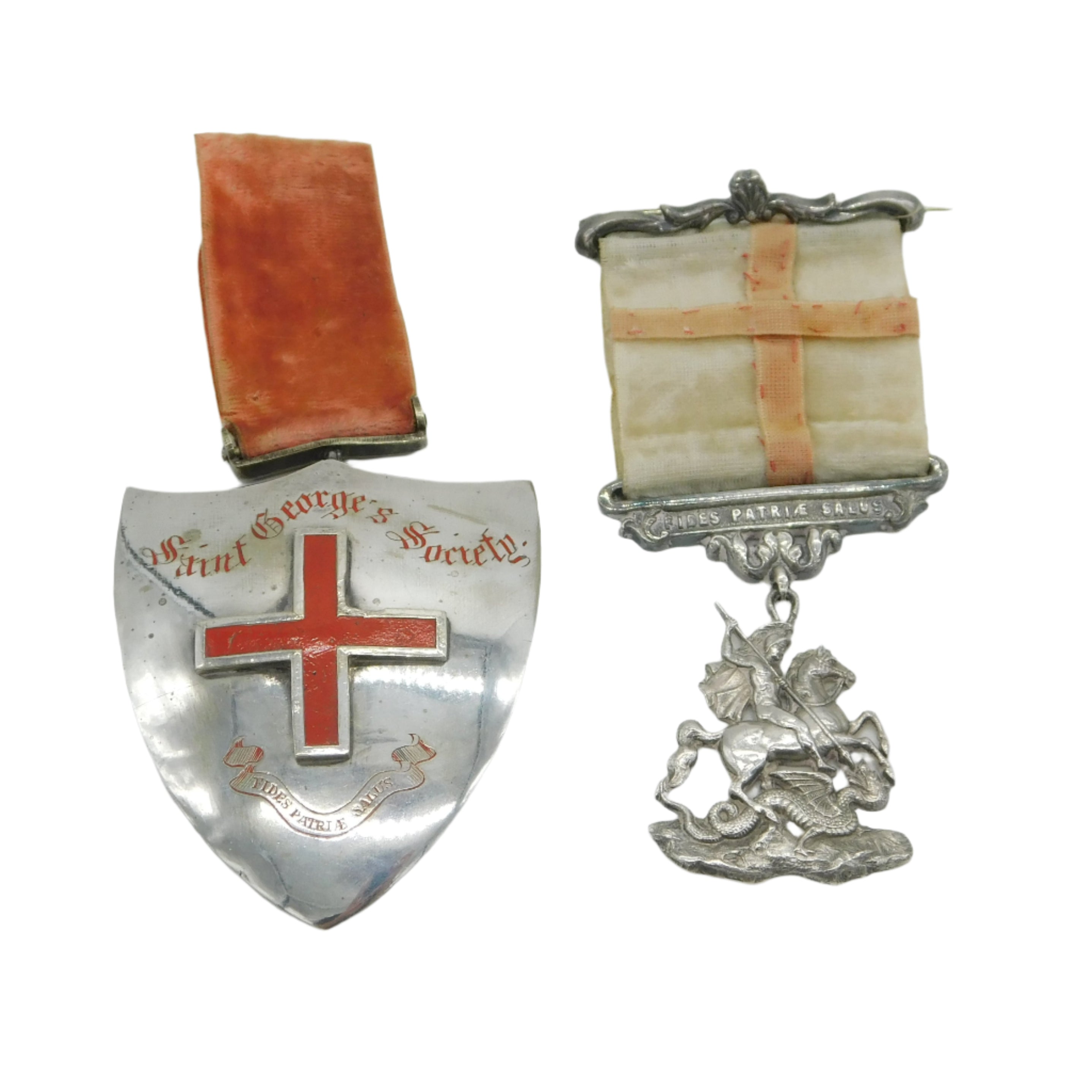 Victorian Sterling Silver Pair Society of St George, Canada Medals Antique 1850