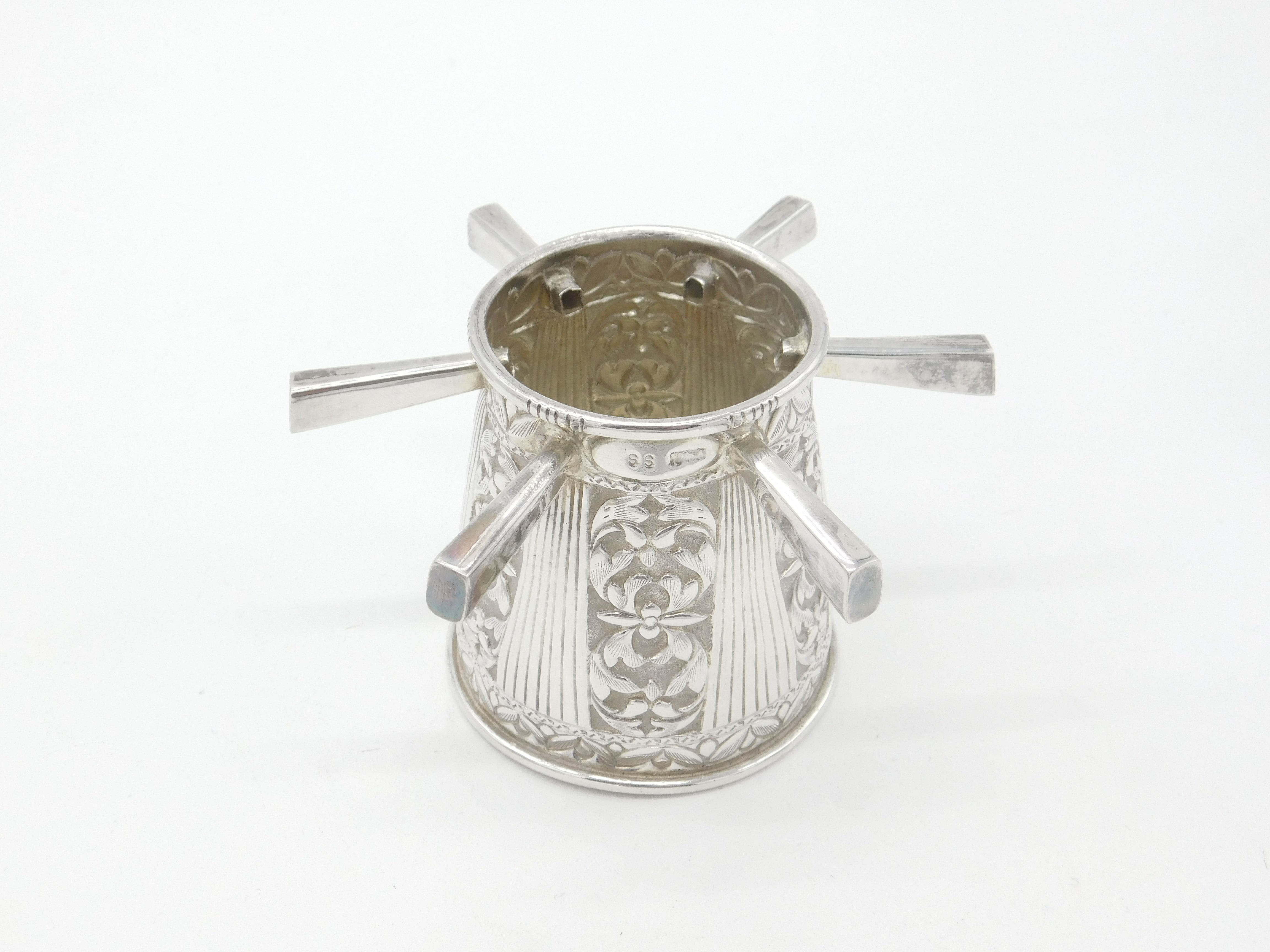 Victorian Sterling Silver Puzzle Mug Floral Pattern Six Handles Antique c1900