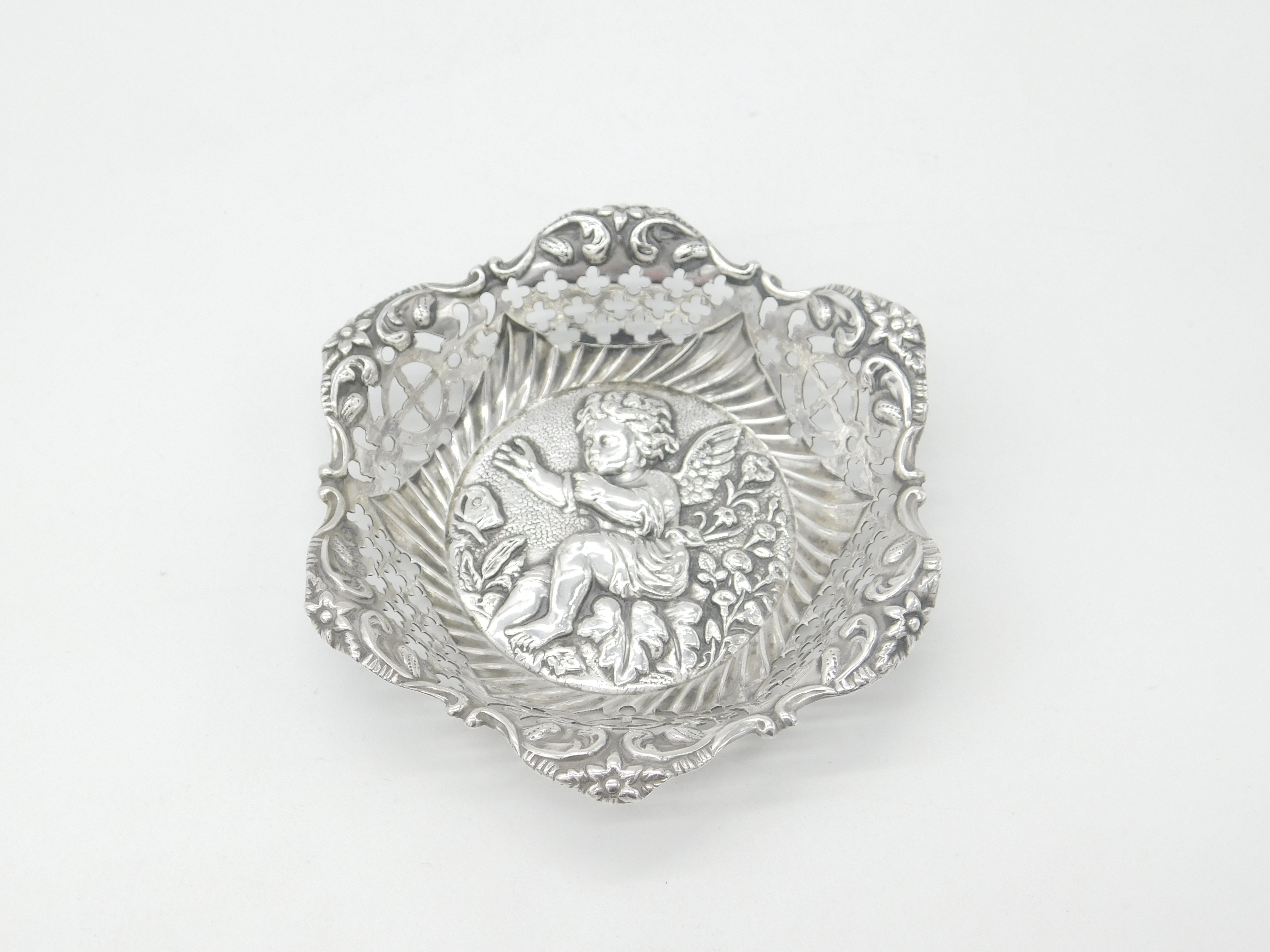 Victorian Sterling Silver Pierced Classical Cherub Treat Dish 1896 Birmingham