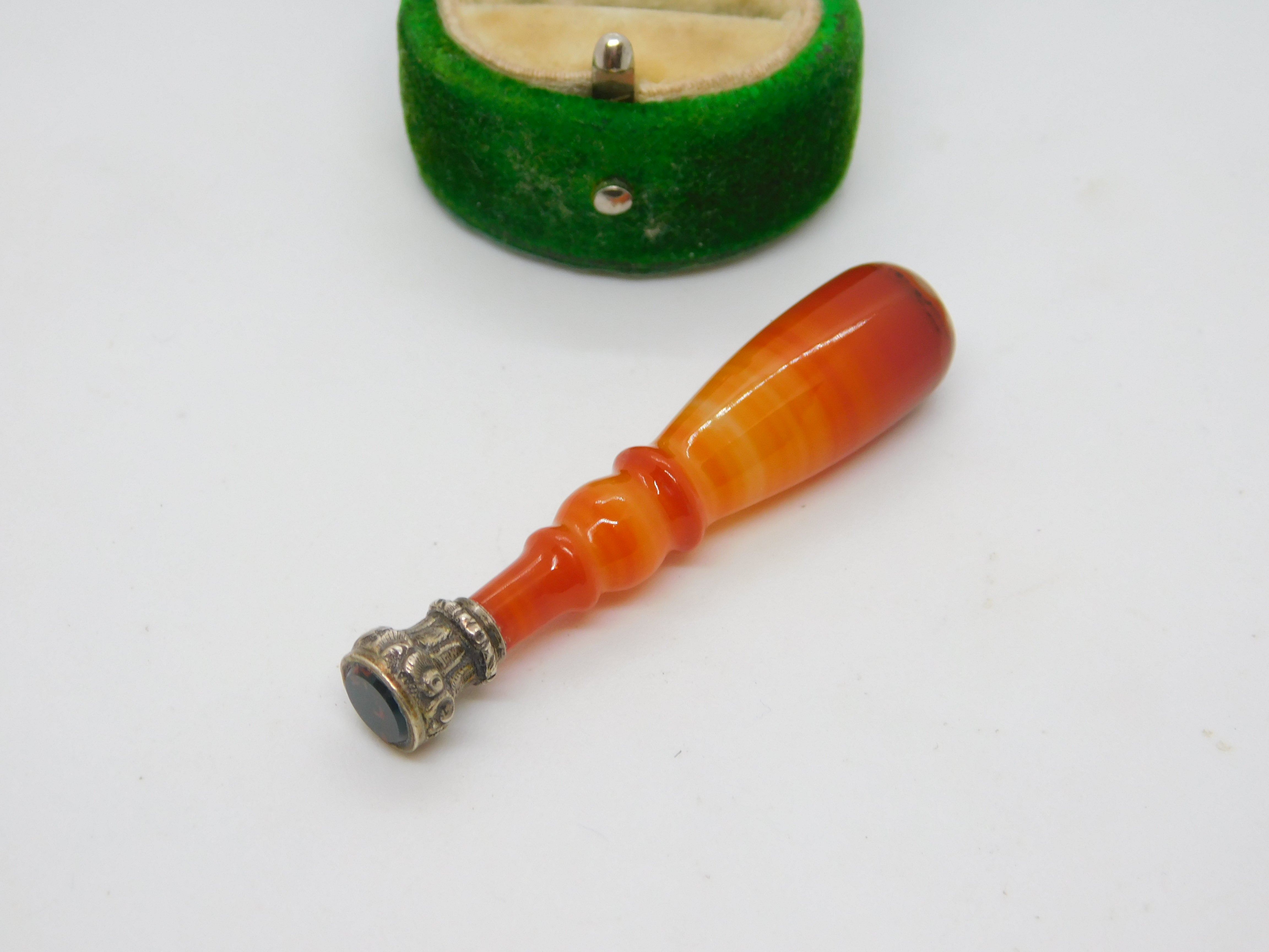Victorian Sterling Silver Red Agate & Bloodstone Set Desk Seal Antique c1860