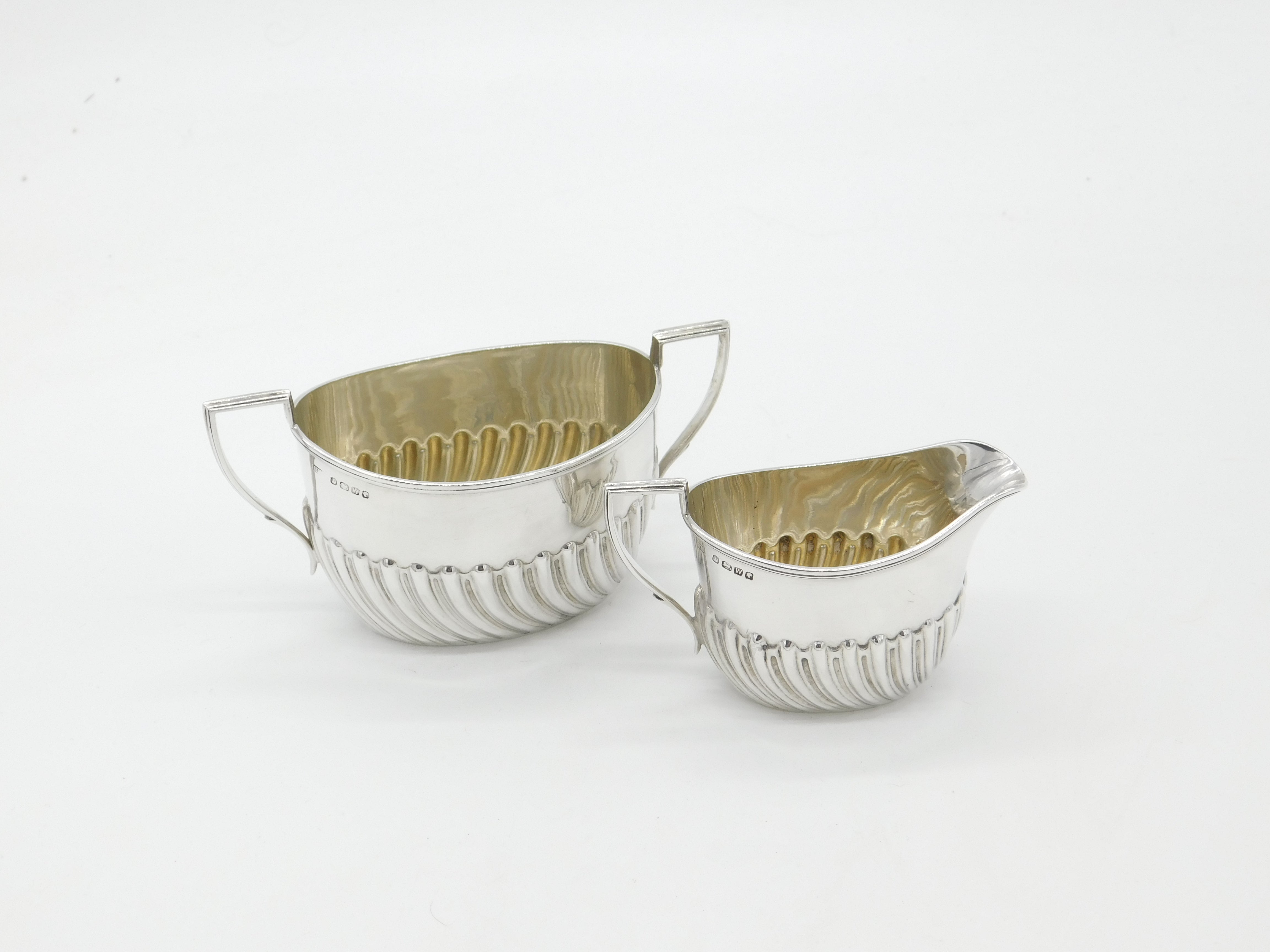 Victorian Sterling Silver Scroll Pattern Sugar Bowl & Cream Jug 1889 Sheffield