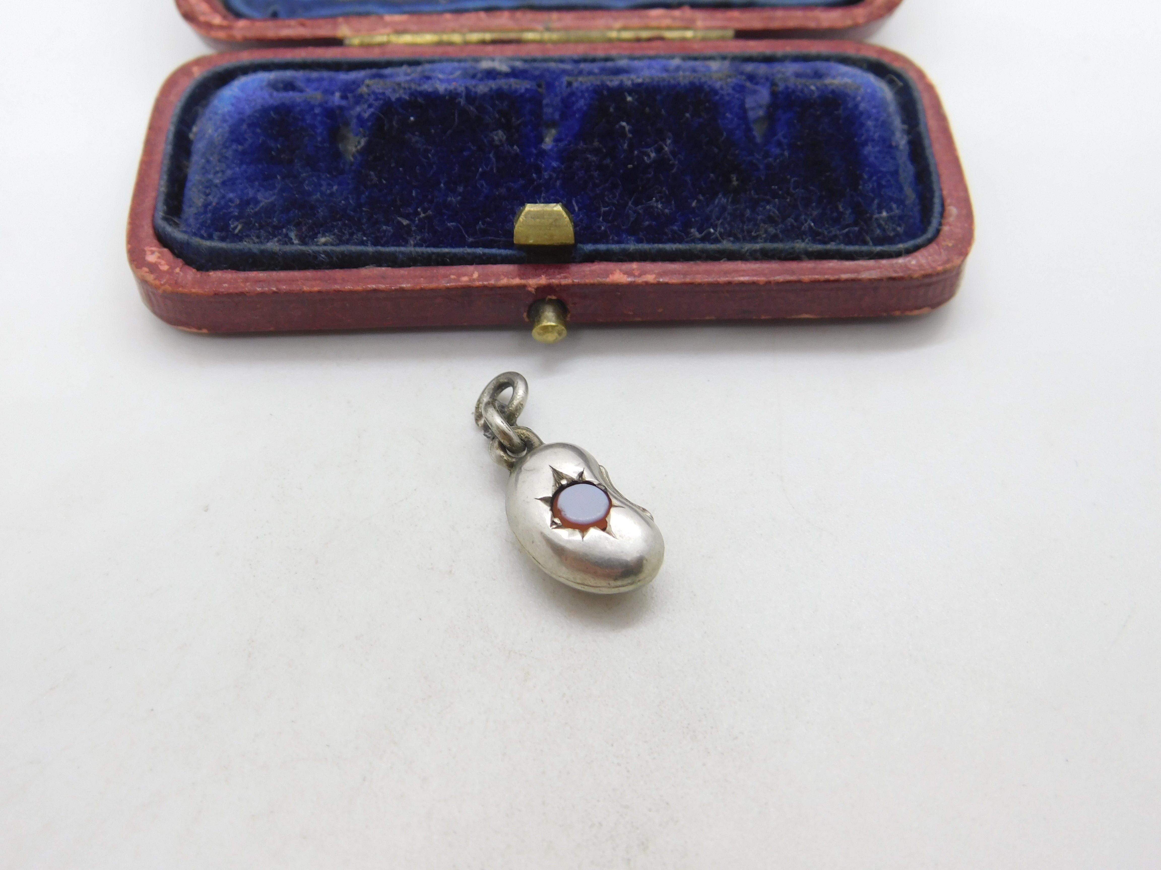 Victorian Sterling Silver Sardonyx Set Lucky Bean Charm Pendant c1880 Antique