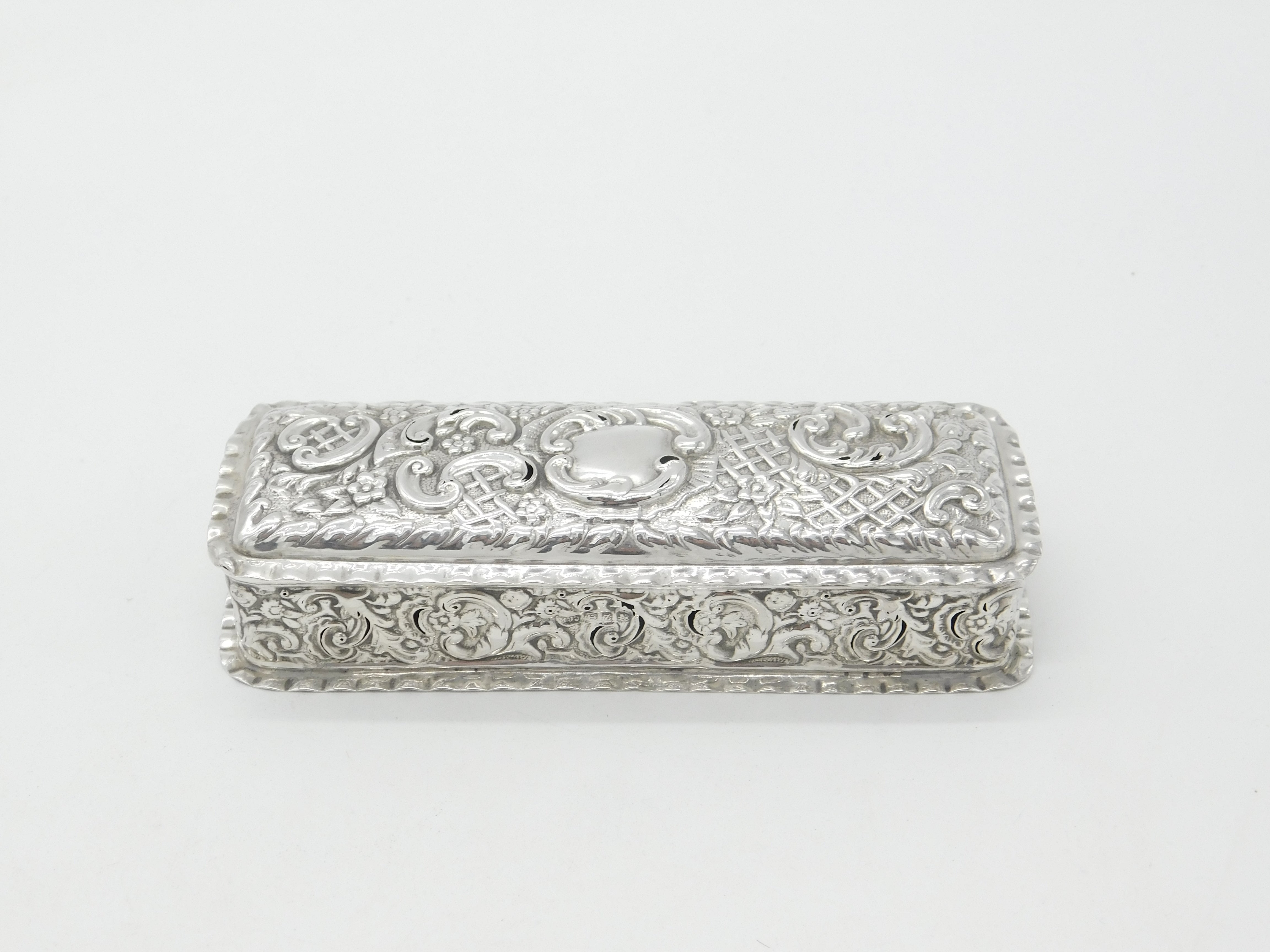 Victorian Sterling Silver Repousse Trinket Box 1899 Birmingham Antique
