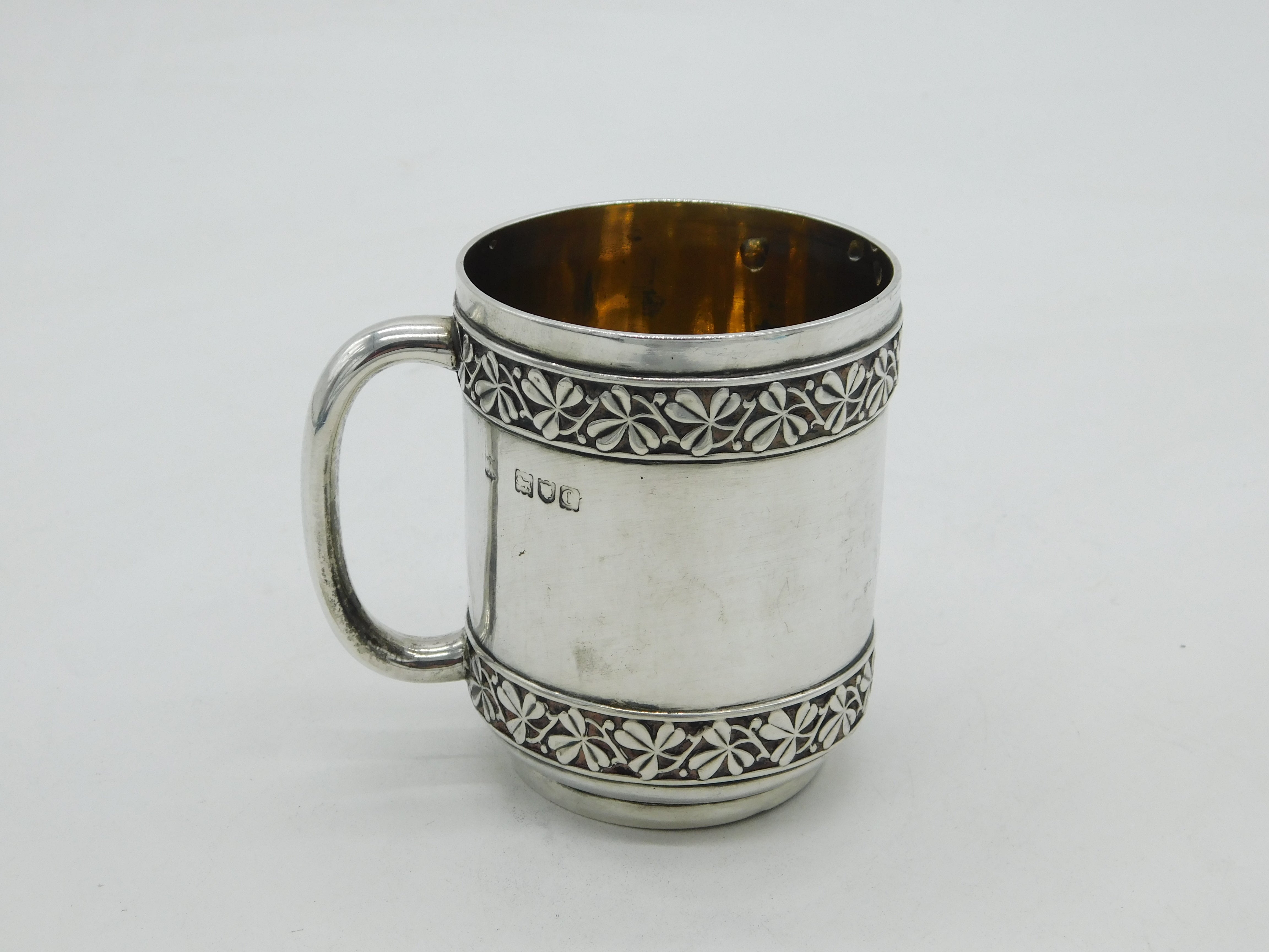 Victorian Sterling Silver Shamrock Pattern Christening Mug Antique 1898 London