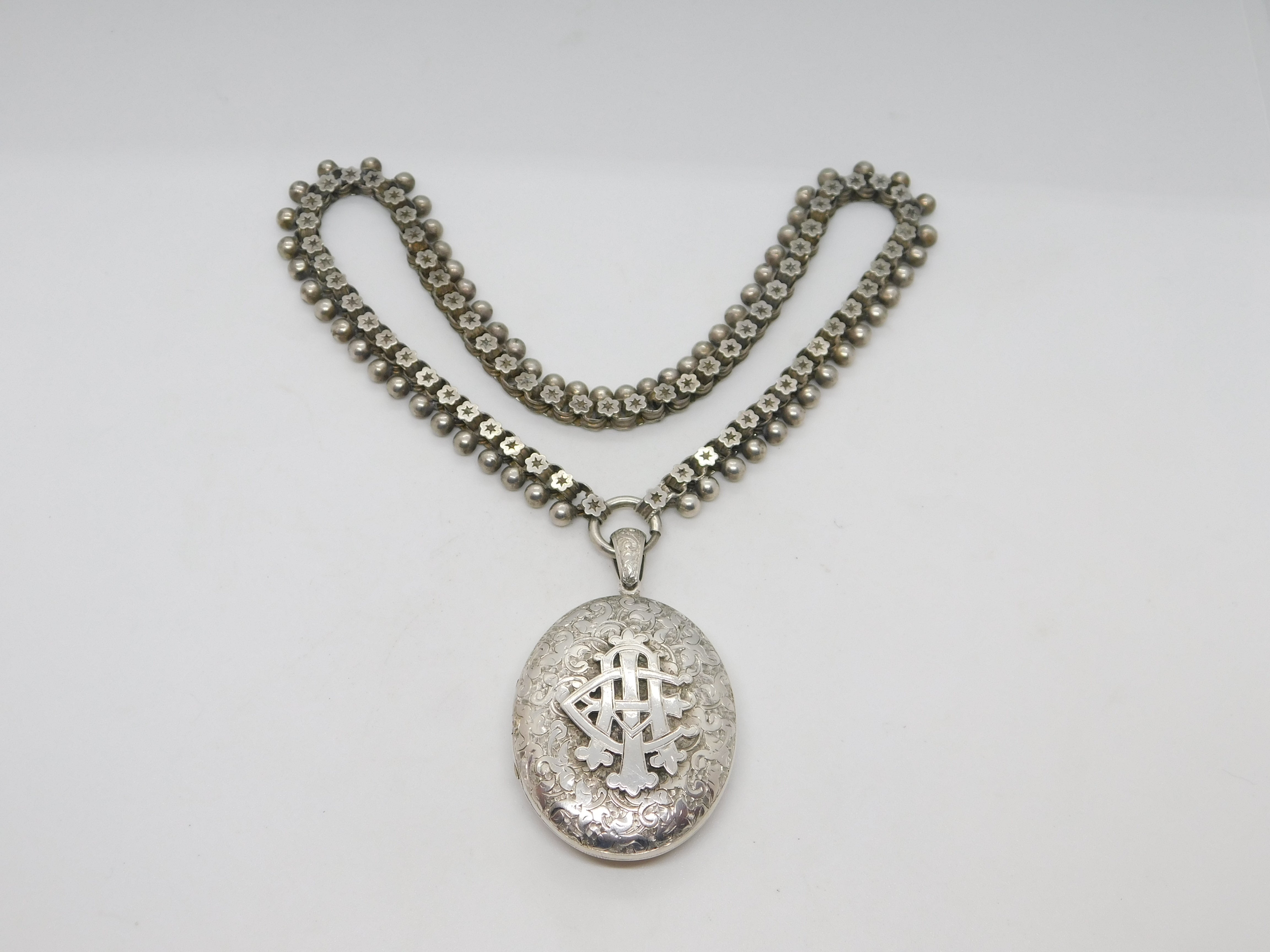 Victorian Sterling Silver Sweetheart Locket on Collar Necklace Antique c1860