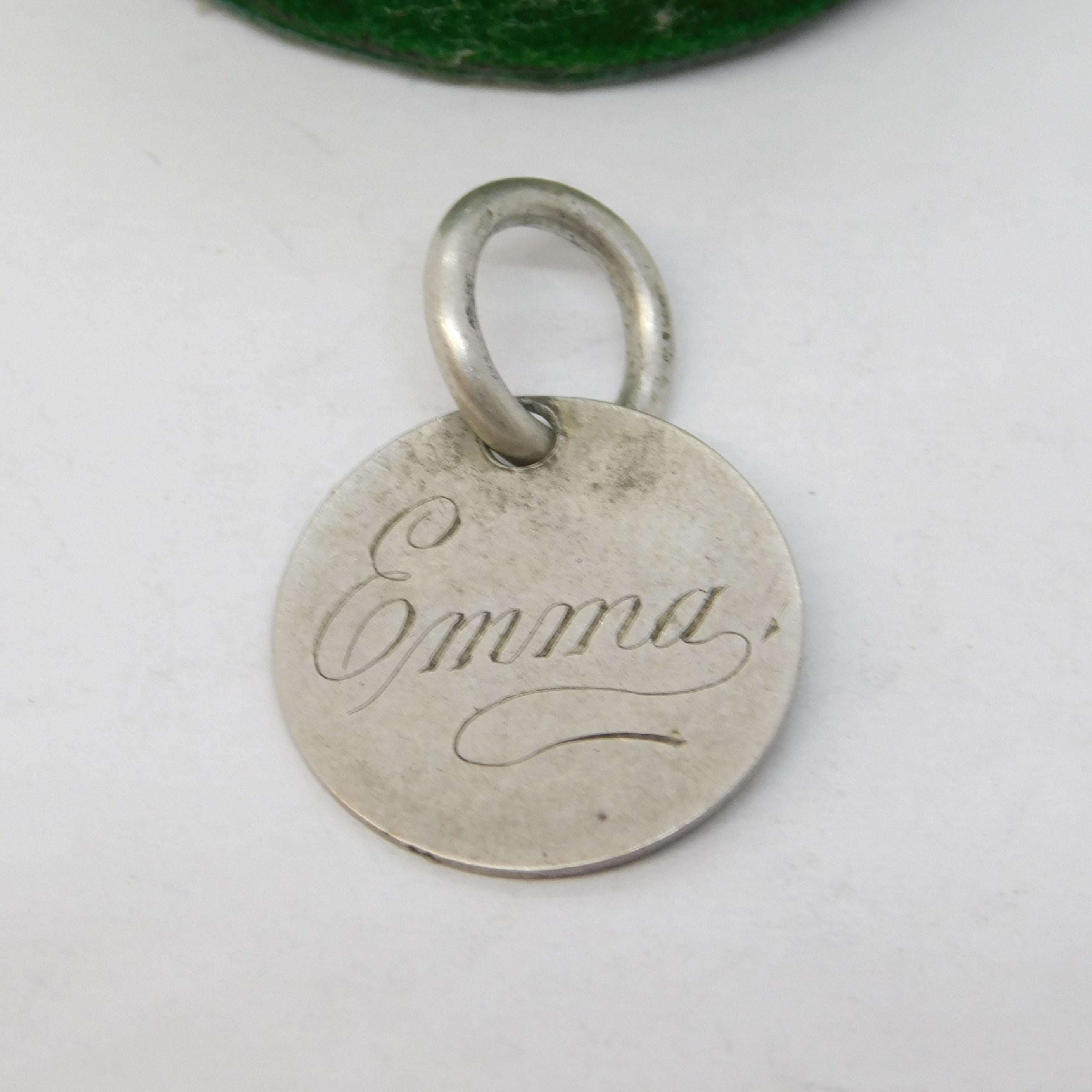 Victorian Sterling Silver Threepence 'Emma' Engraved Love Token Charm Antique c1880