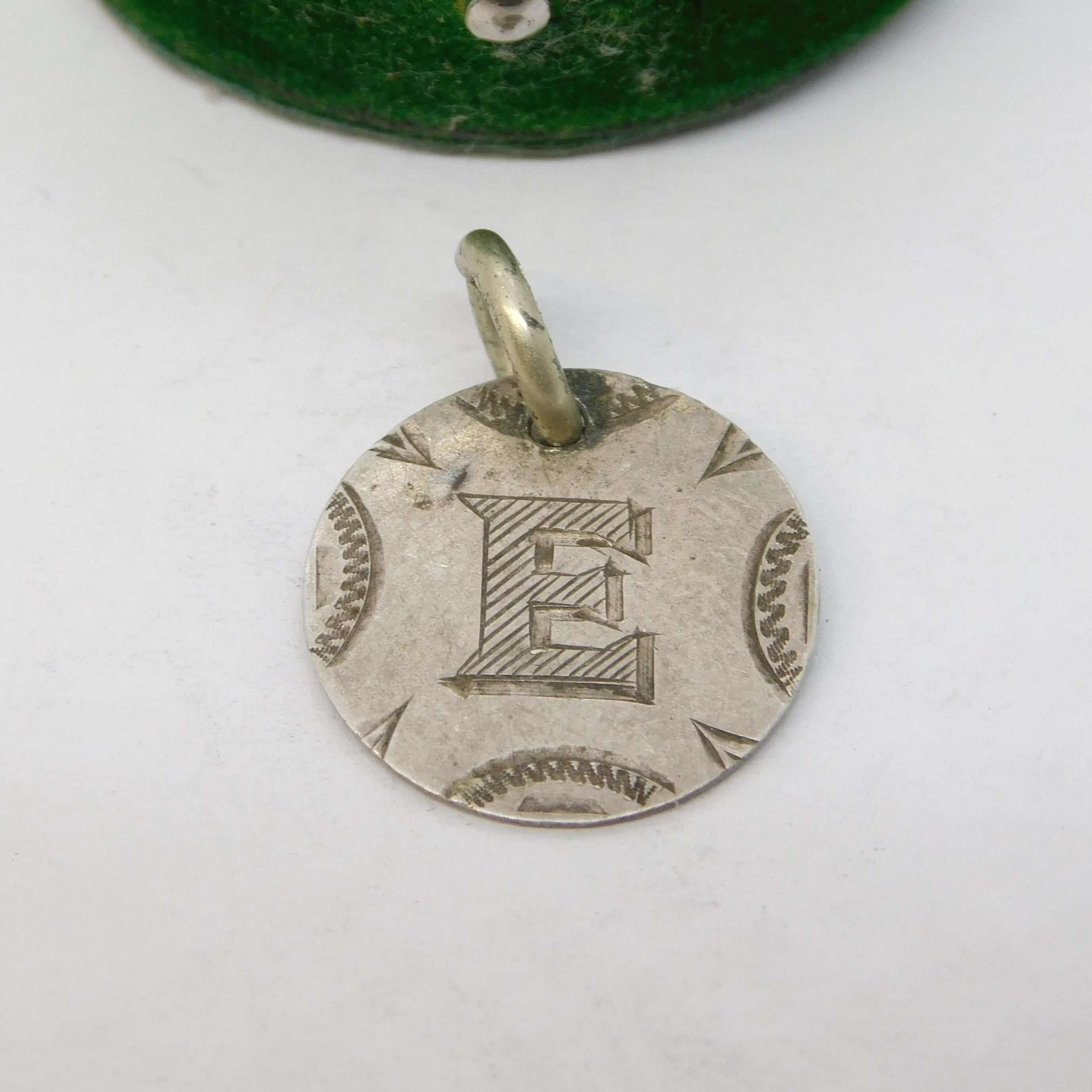 Victorian Sterling Silver Threepence 'E' Engraved Love Token Charm Antique c1880