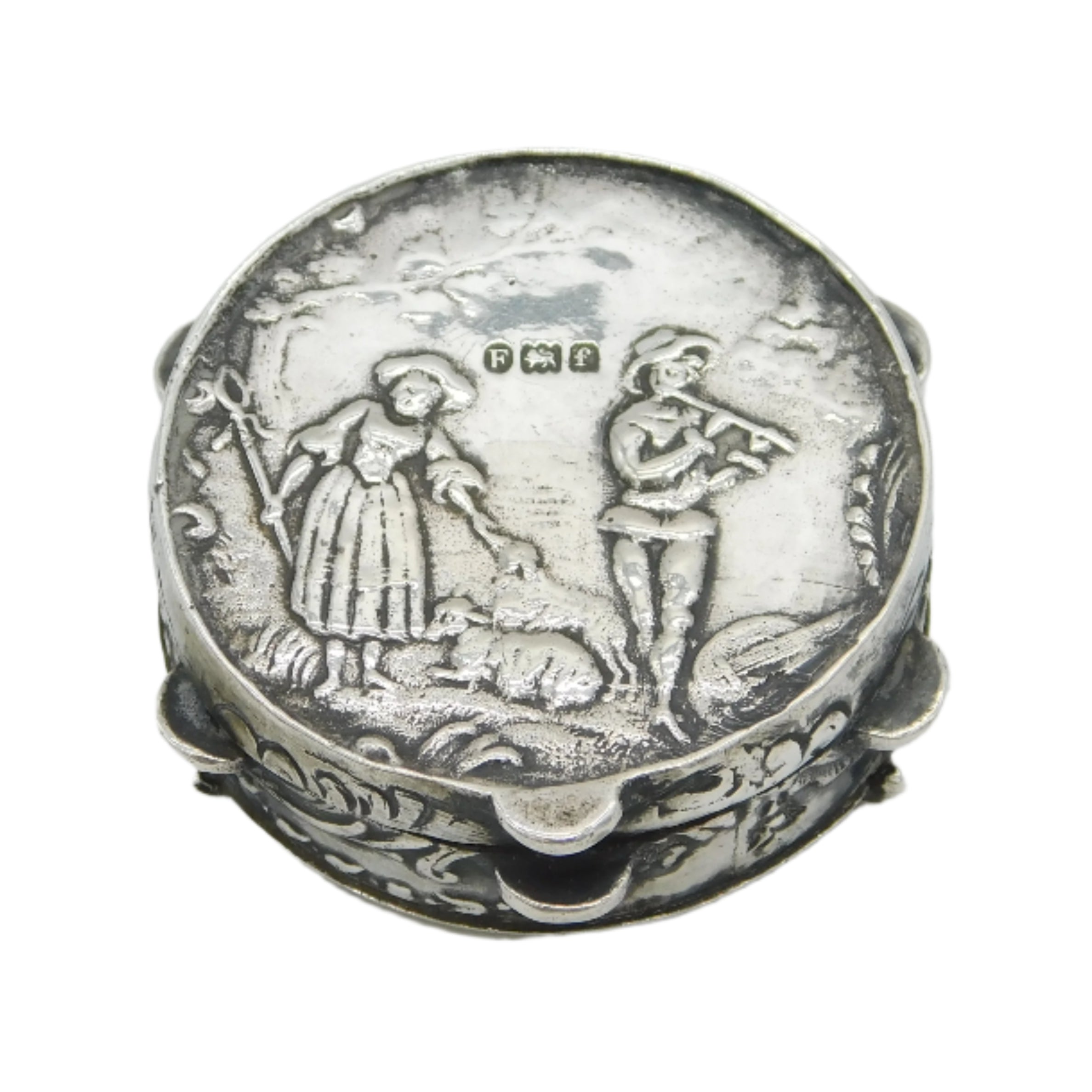 Victorian Sterling Silver Tambourine Form Pill Box Antique 1901 London