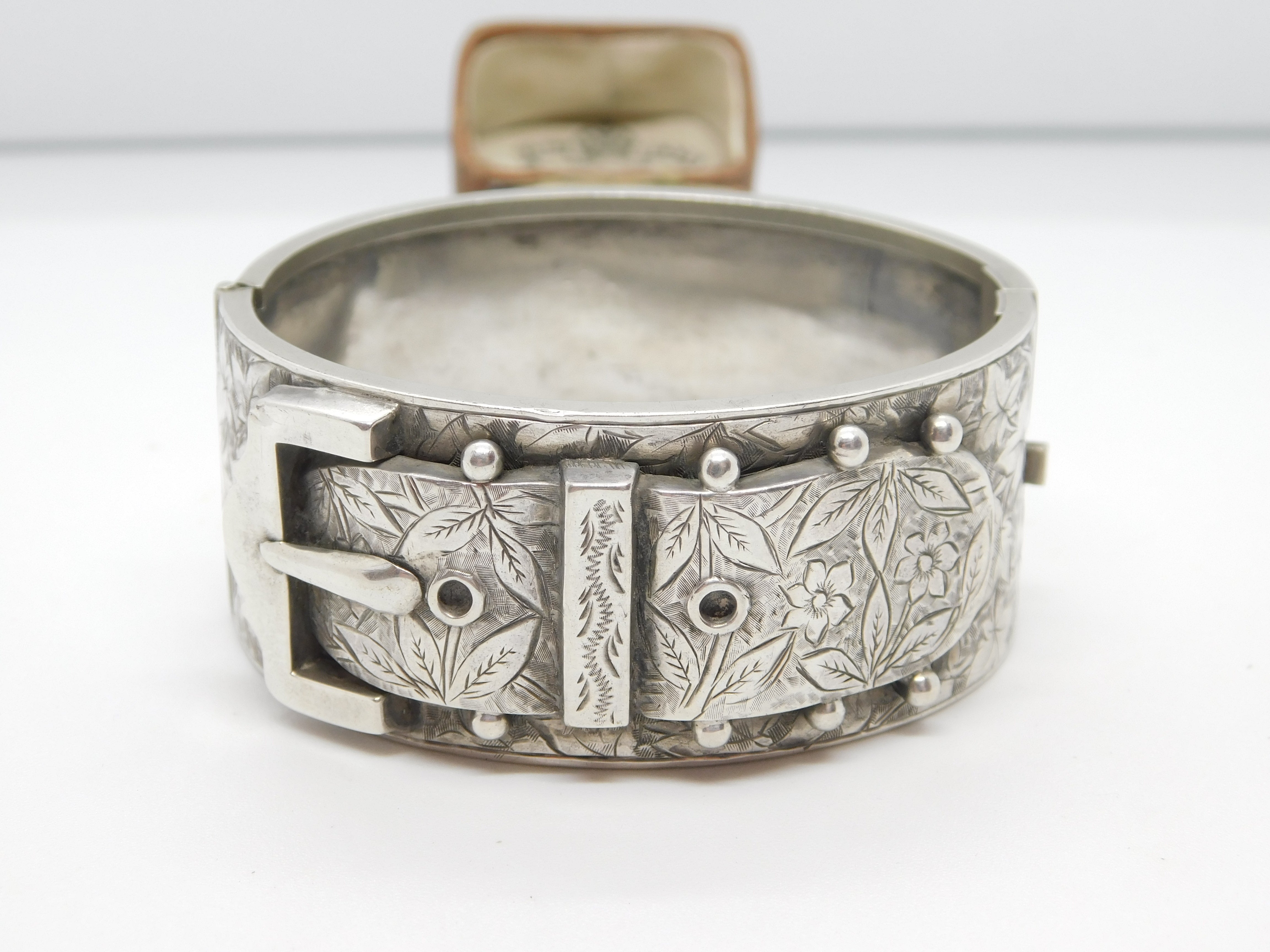 Victorian Sterling Silver Sweetheart Buckle Bangle Bracelet Antique c1880