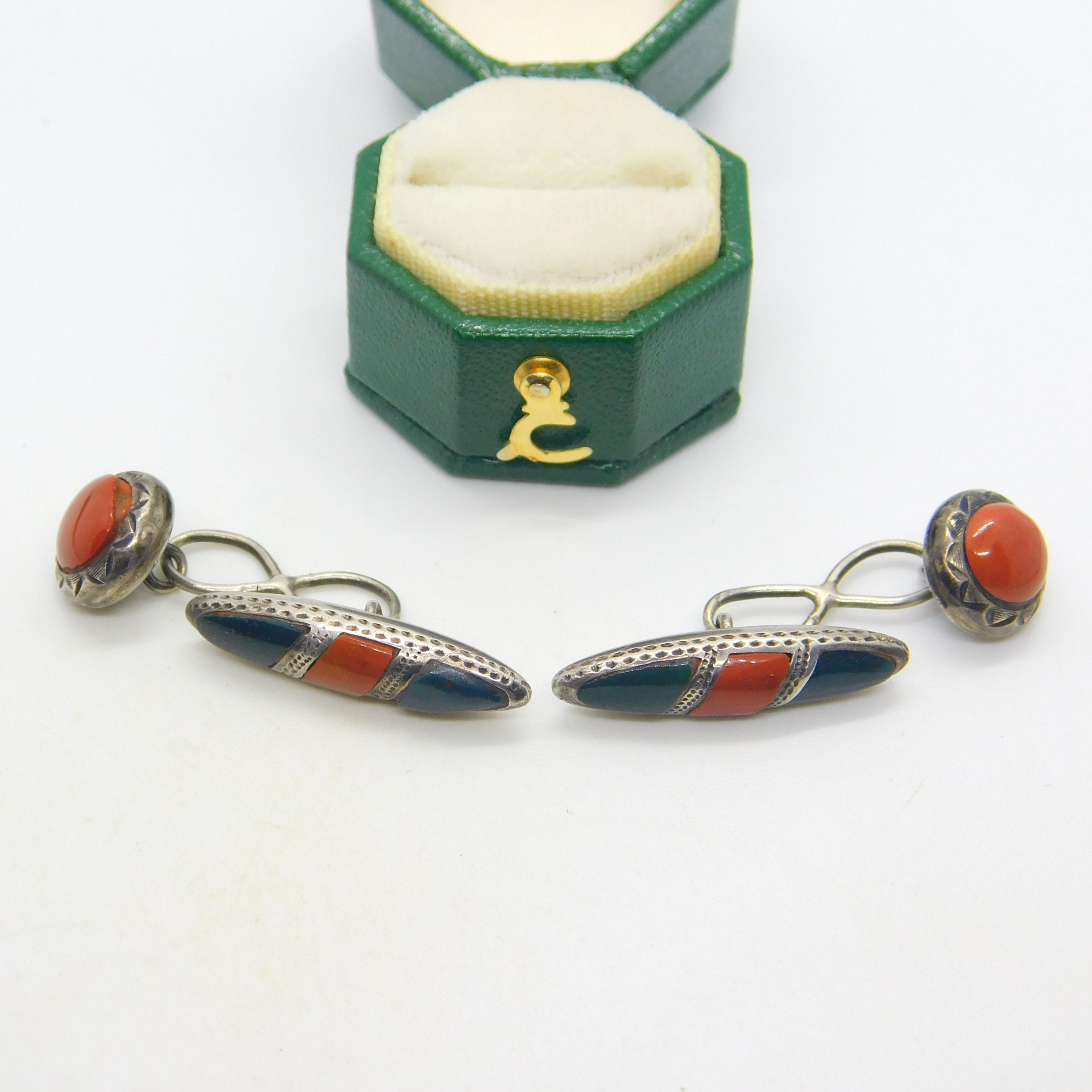 Victorian Sterling Silver, Bloodstone & Red Agate Gents Cufflinks Antique 1896 Birmingham