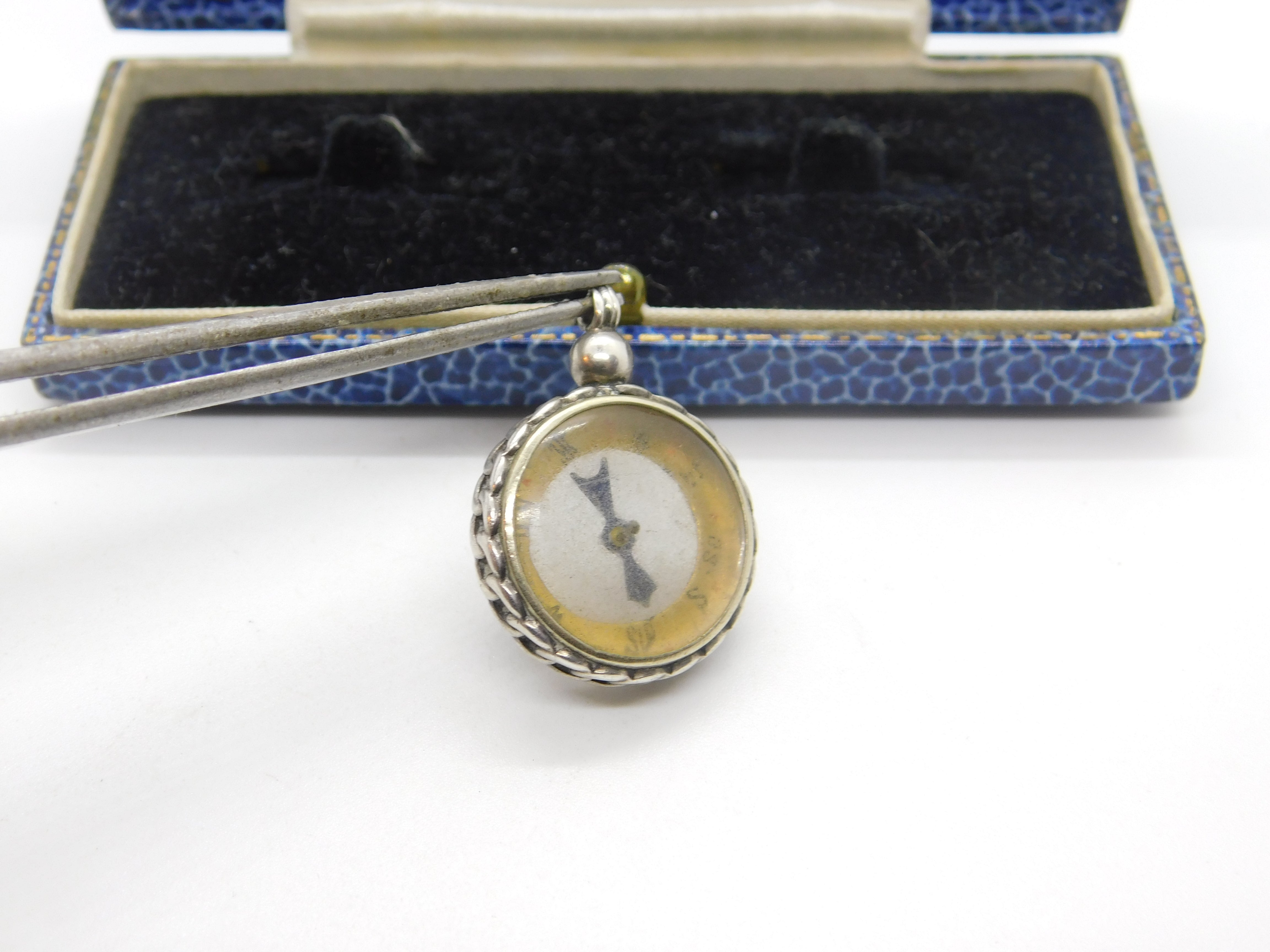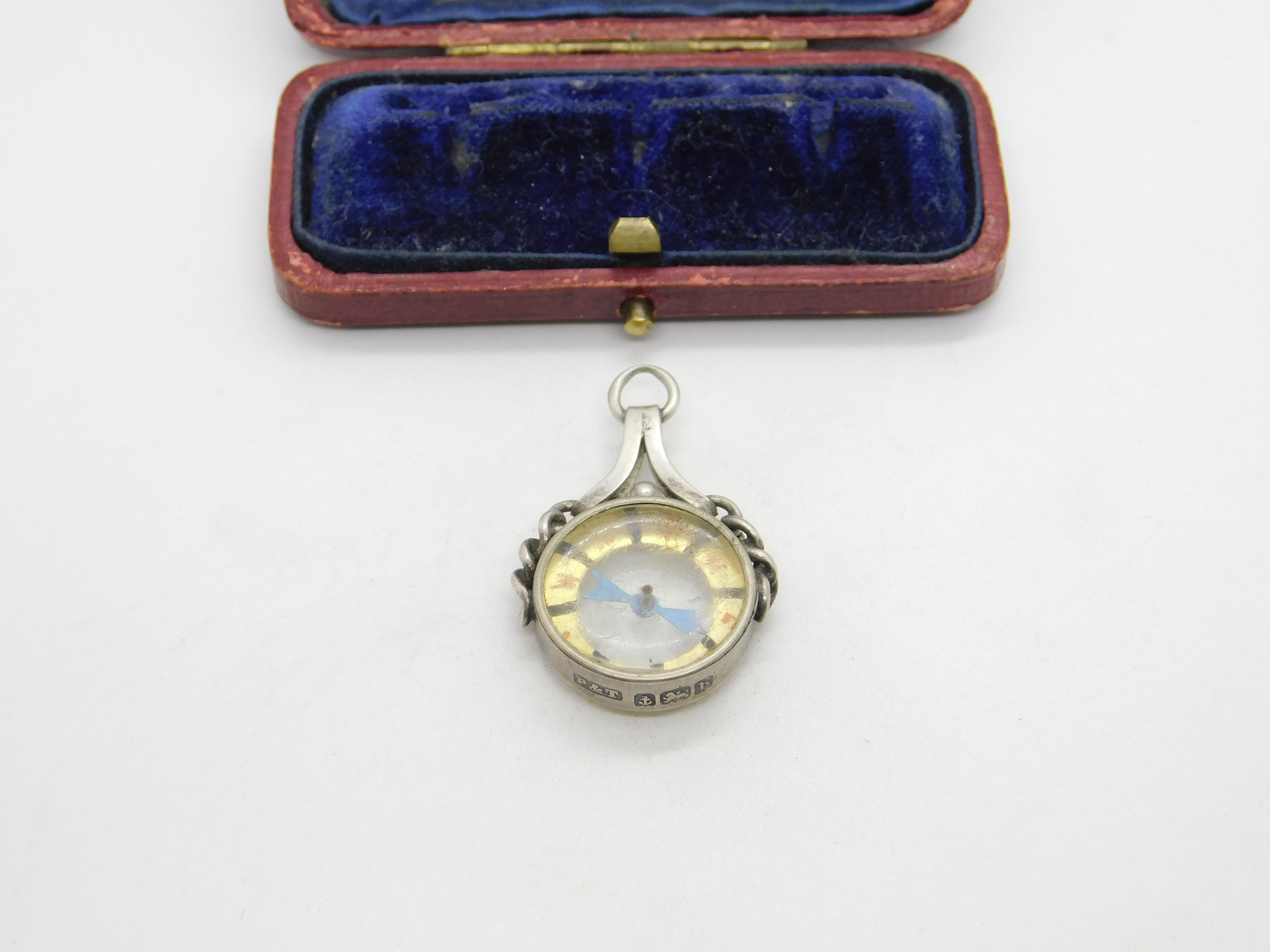 Victorian Sterling Silver Working Compass Fob Pendant Antique 1901 Chester