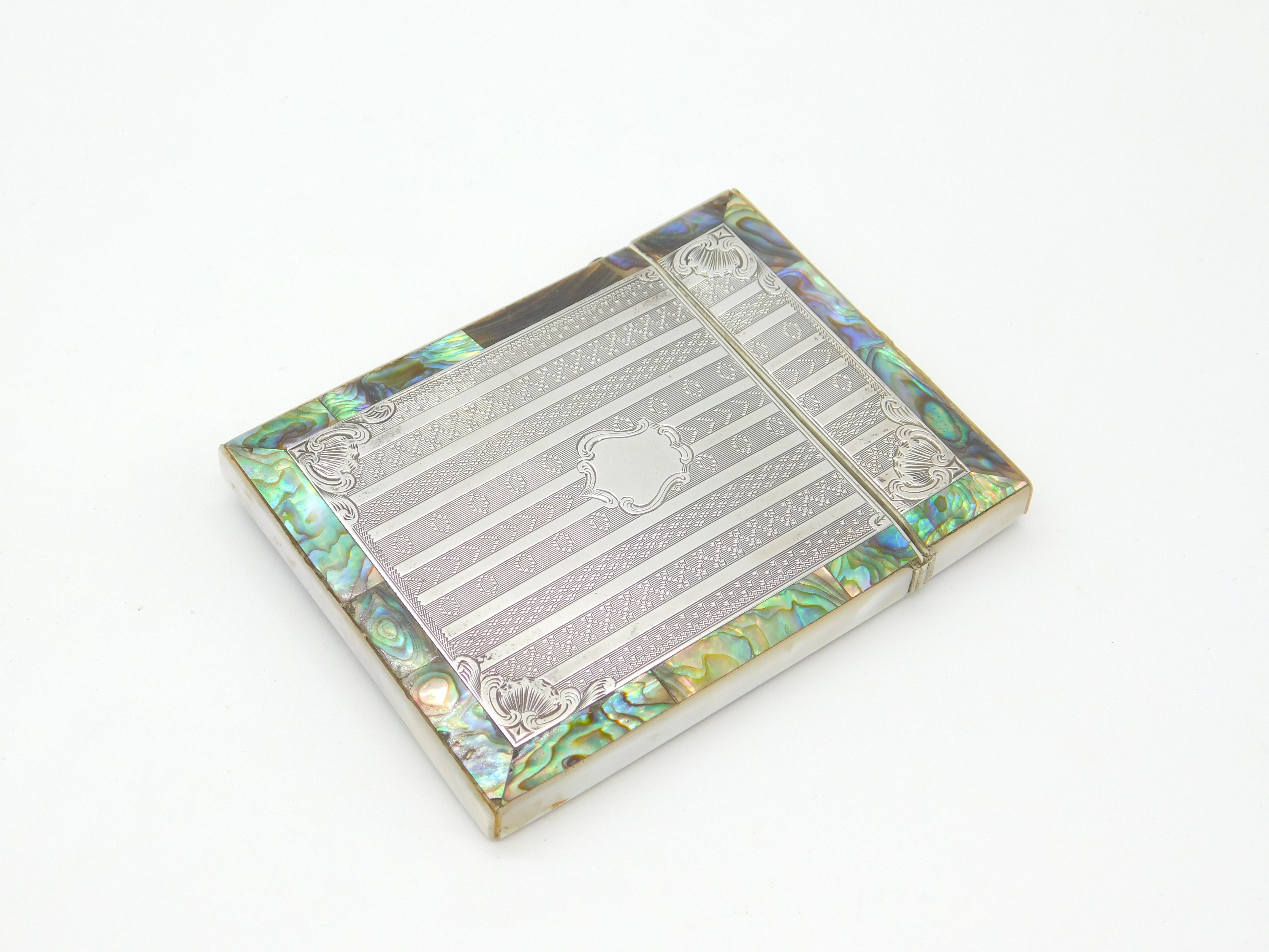 Victorian Sterling Silver, Abalone & Mother of Pearl Card Case Antique c1890