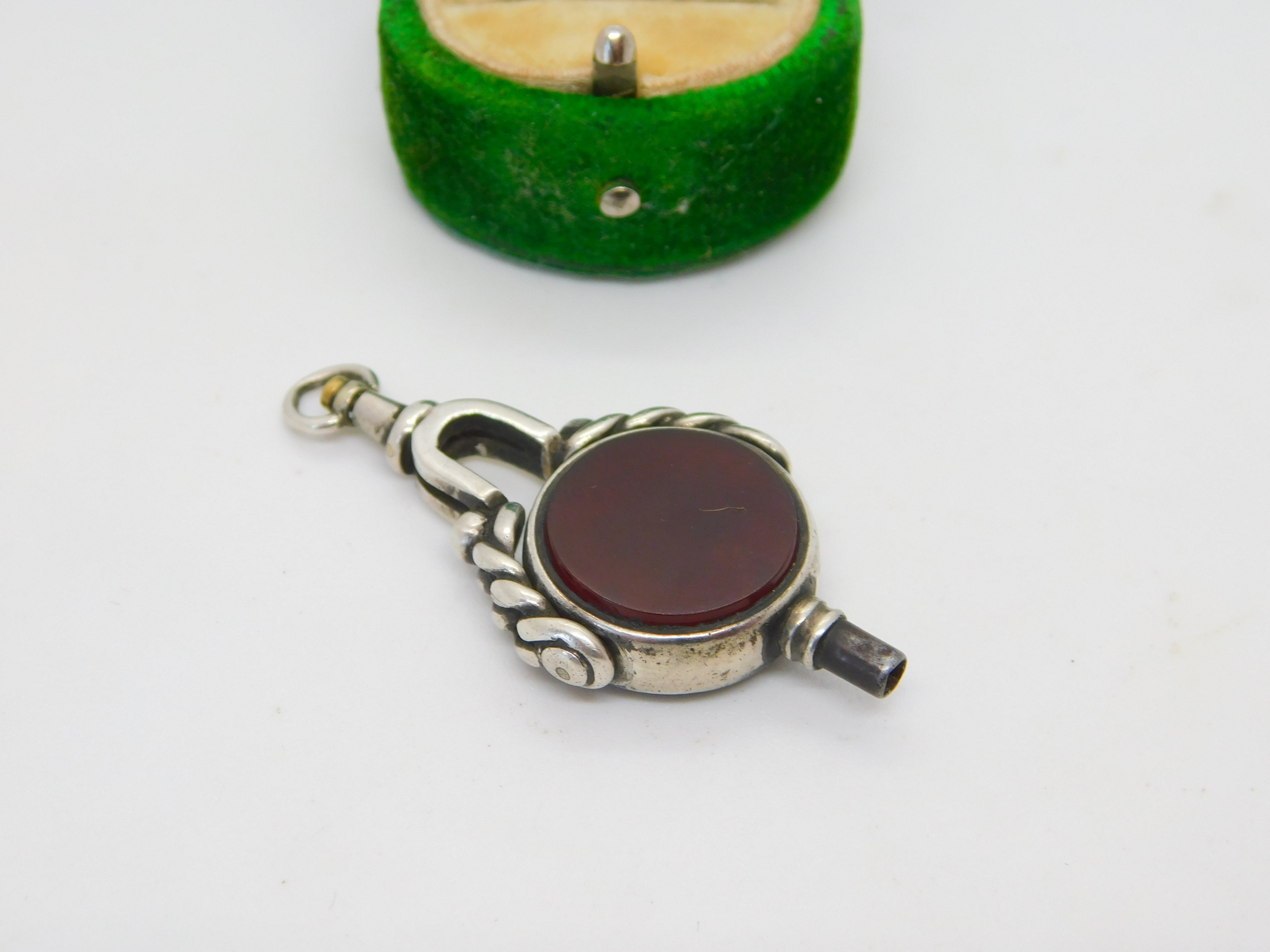 Victorian Sterling Silver, Bloodstone & Carnelian Spinner Watch Key Fob Antique